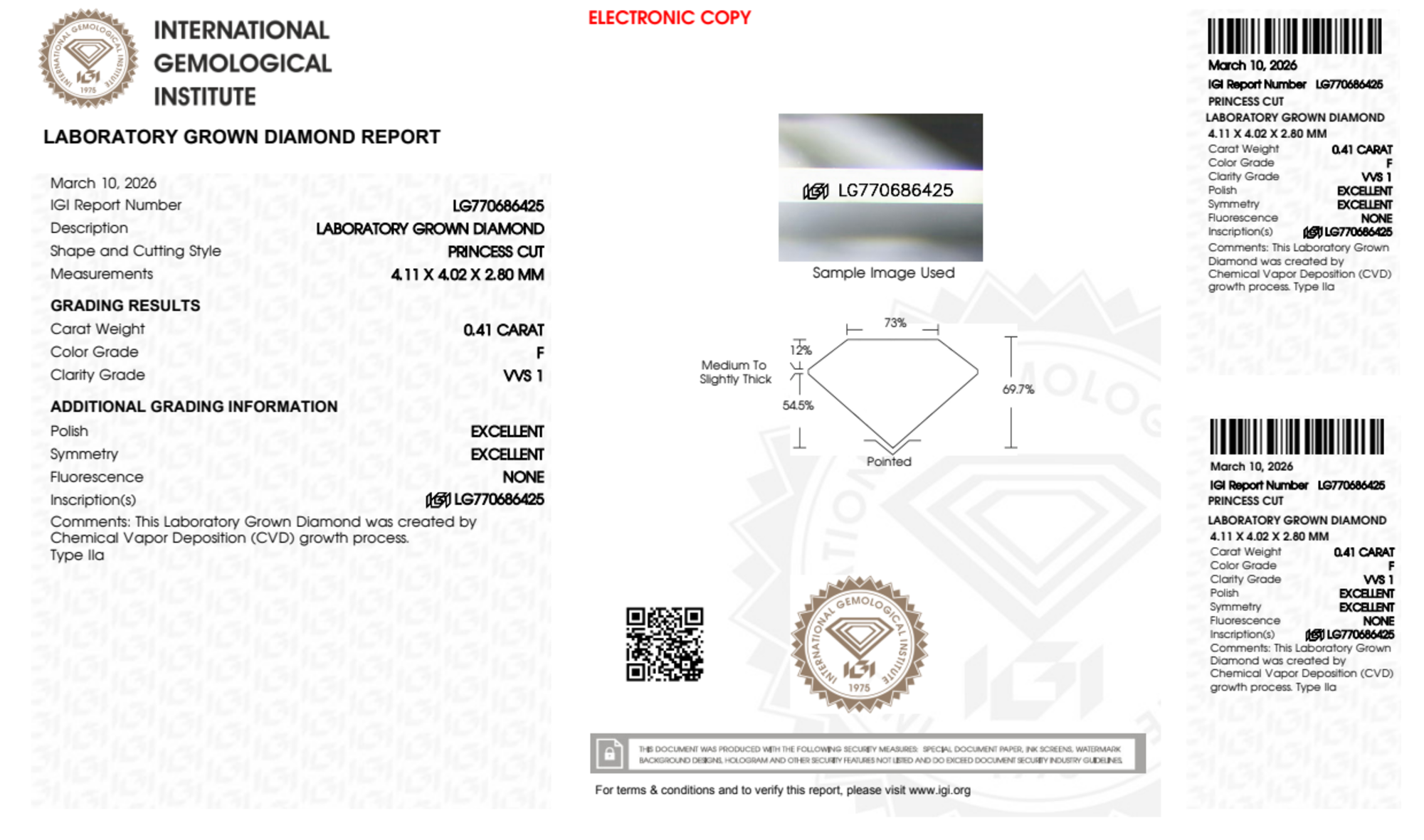 0.41 Carat princess lab Diamond