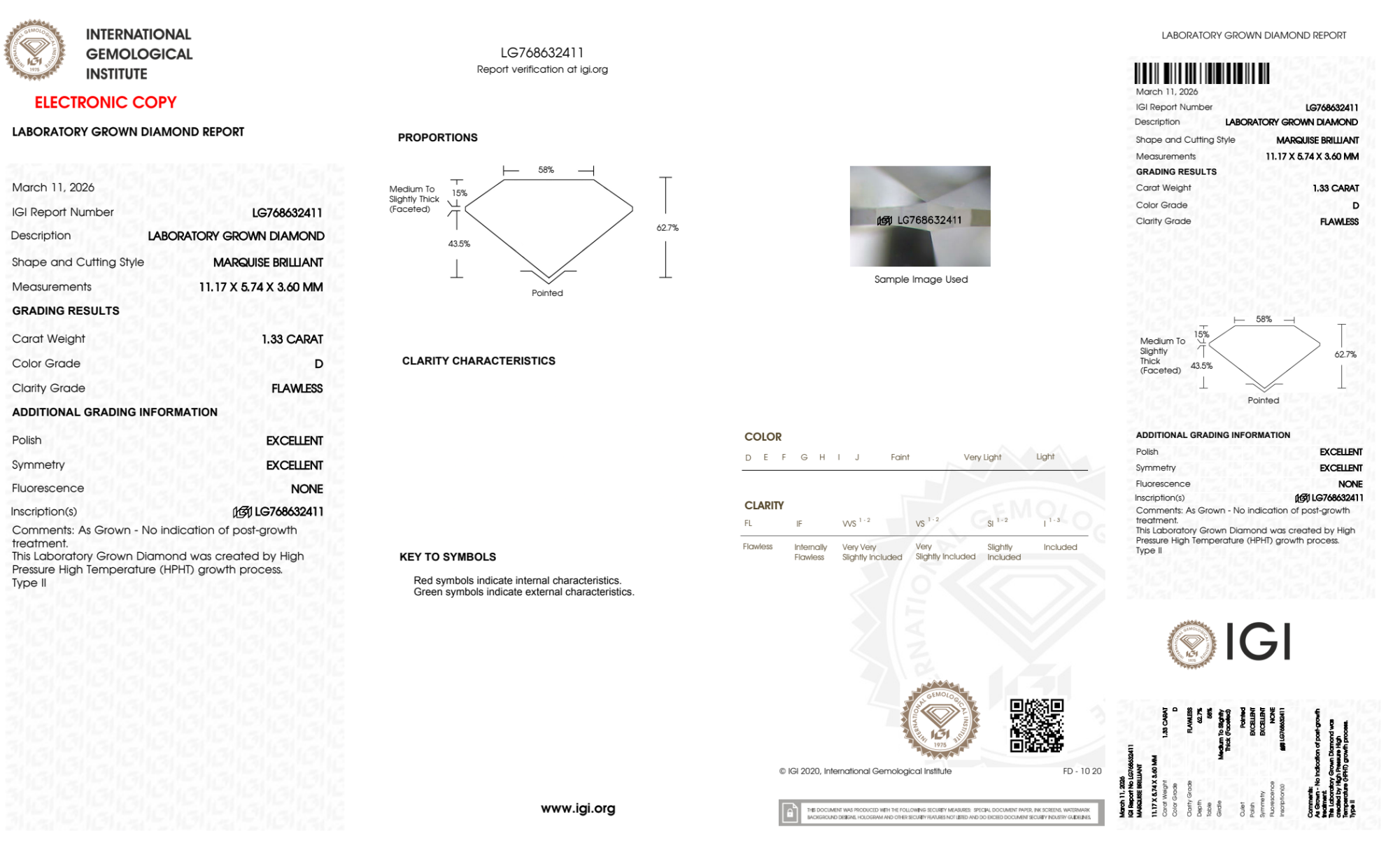 1.33 Carat marquise lab Diamond