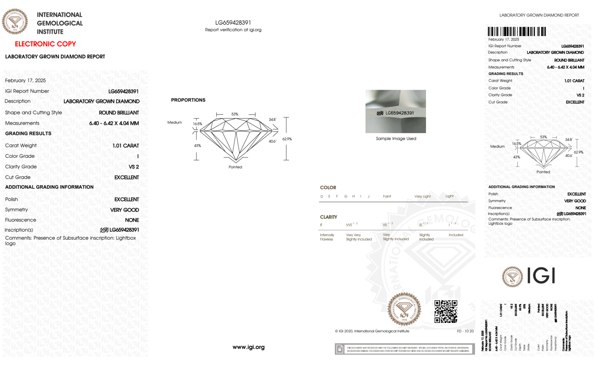 1.01 Carat round lab Diamond