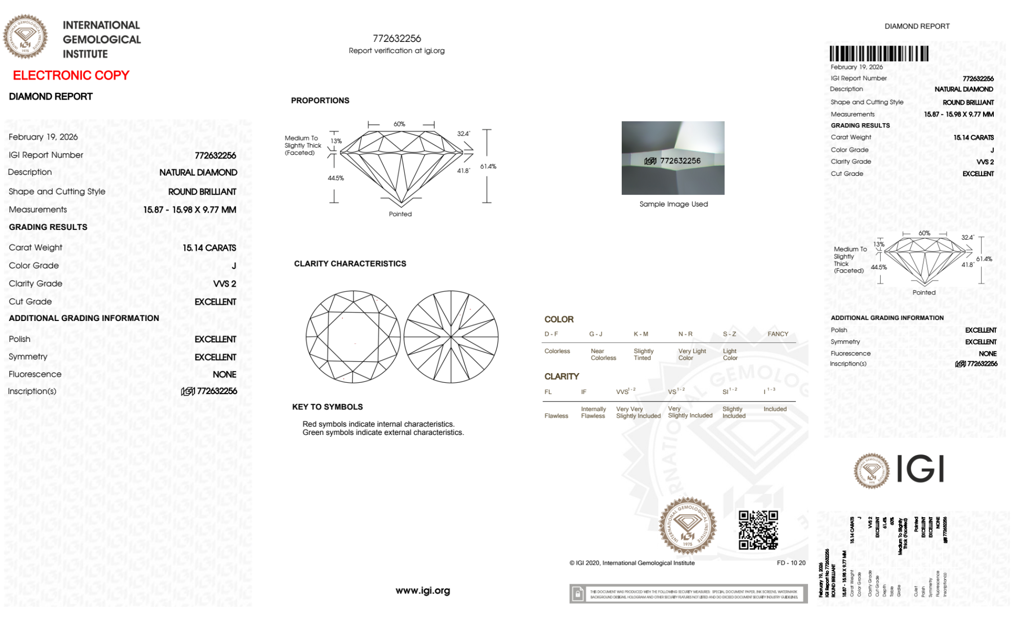 15.14 Carat round natural Diamond