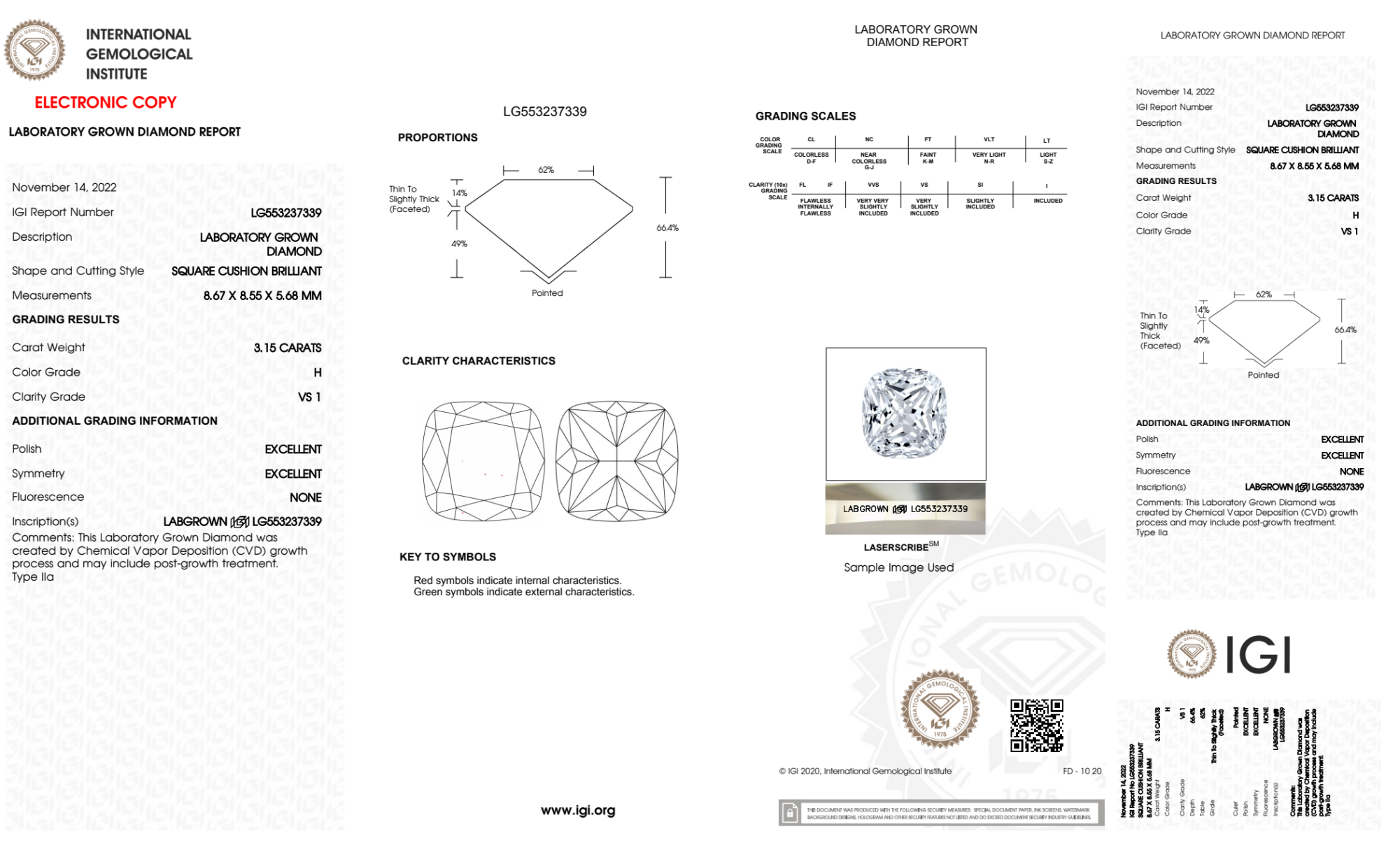 3.15 Carat cushion lab Diamond
