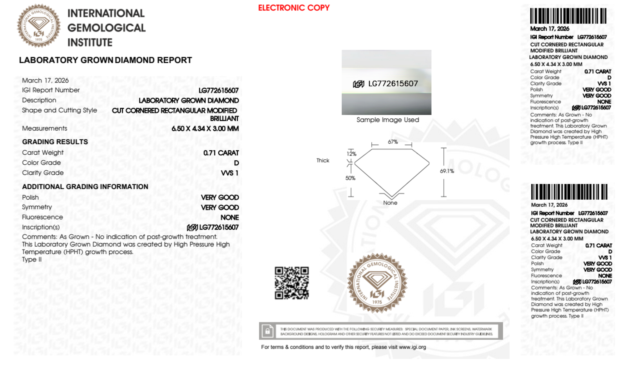 0.71 Carat radiant lab Diamond