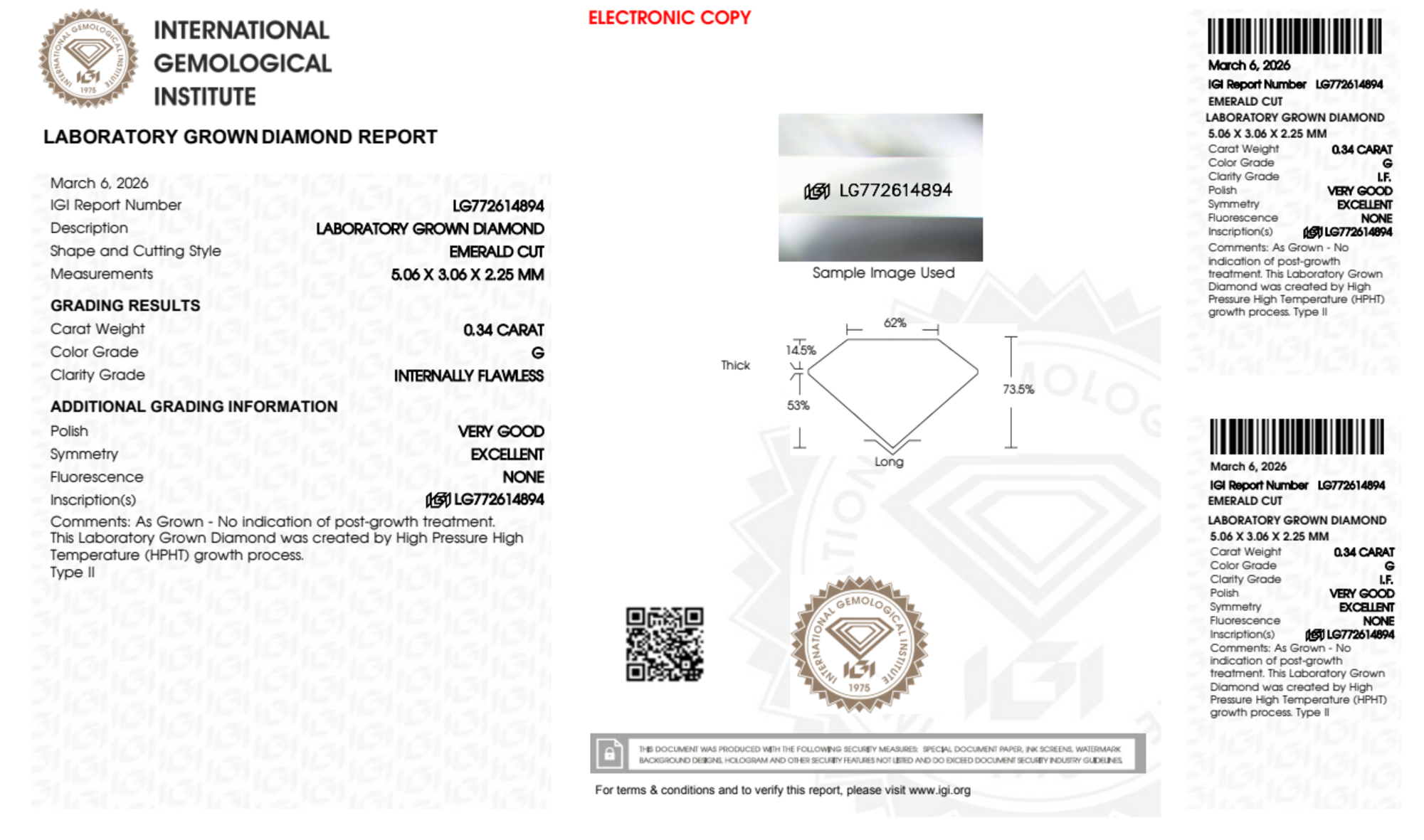 0.34 Carat emerald lab Diamond