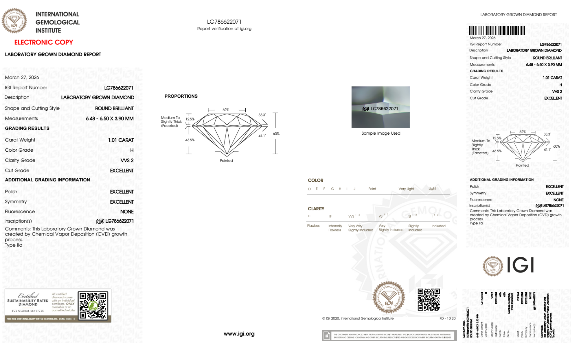 1.01 Carat round lab Diamond