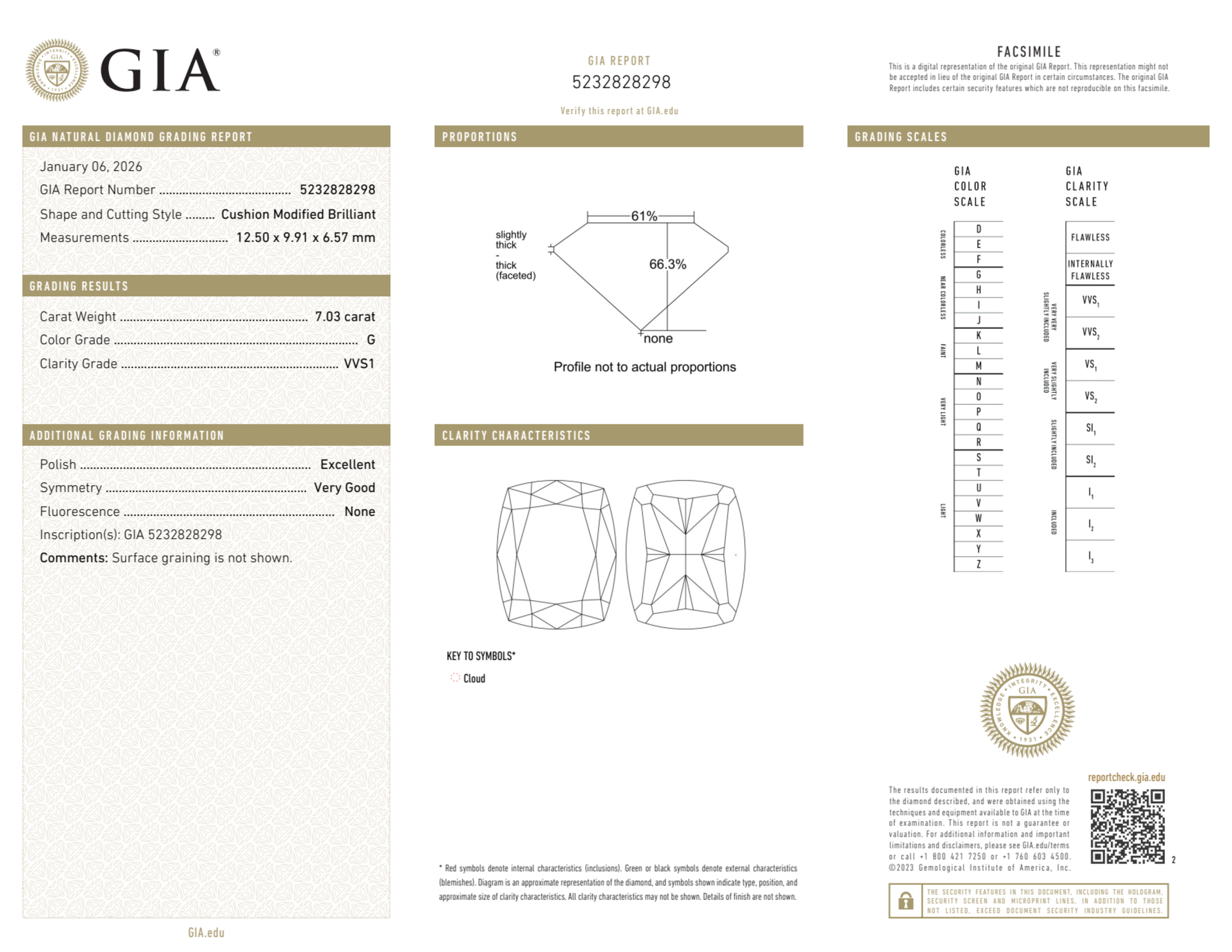7.03 Carat cushion natural Diamond