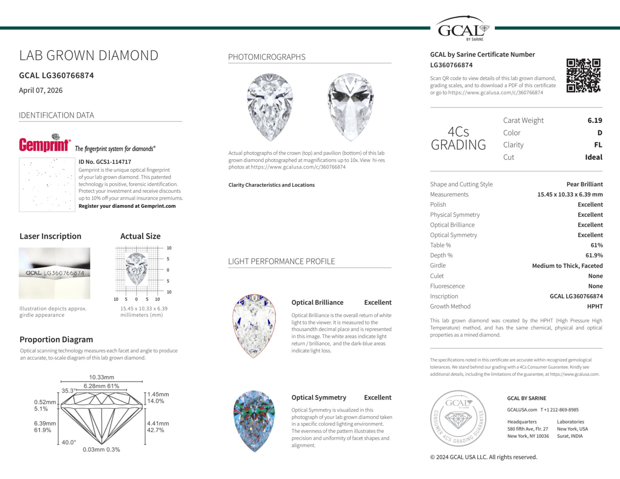 6.19 Carat pear lab Diamond