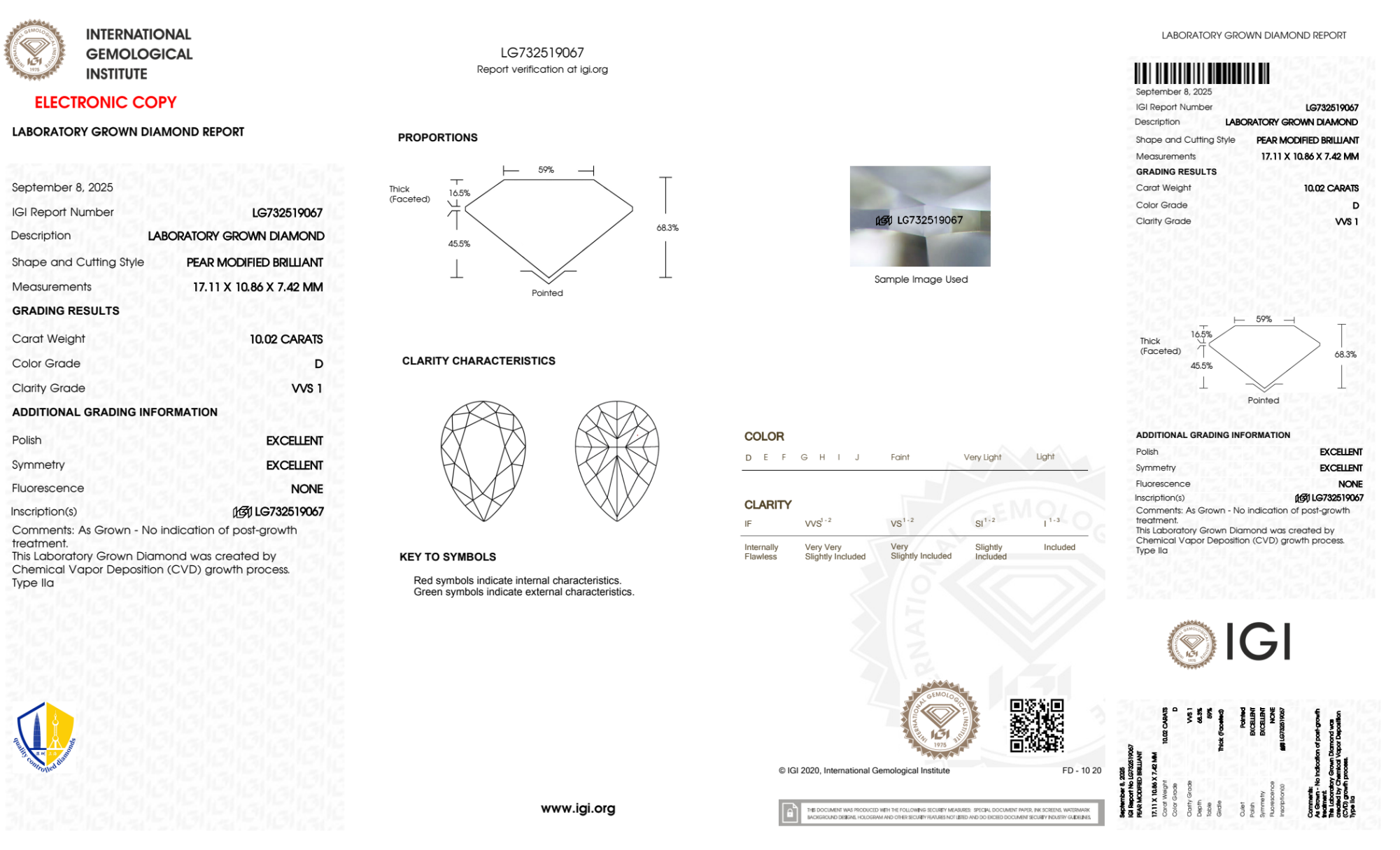 10.02 Carat pear lab Diamond
