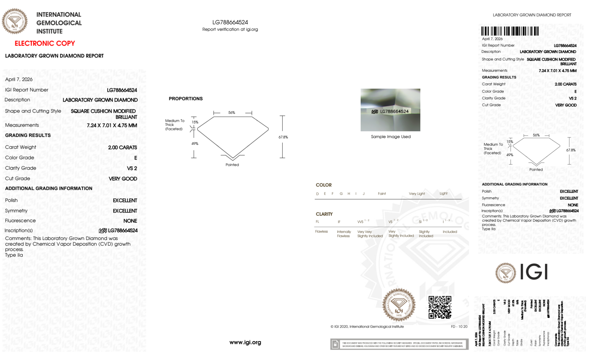 2.00 Carat cushion lab Diamond