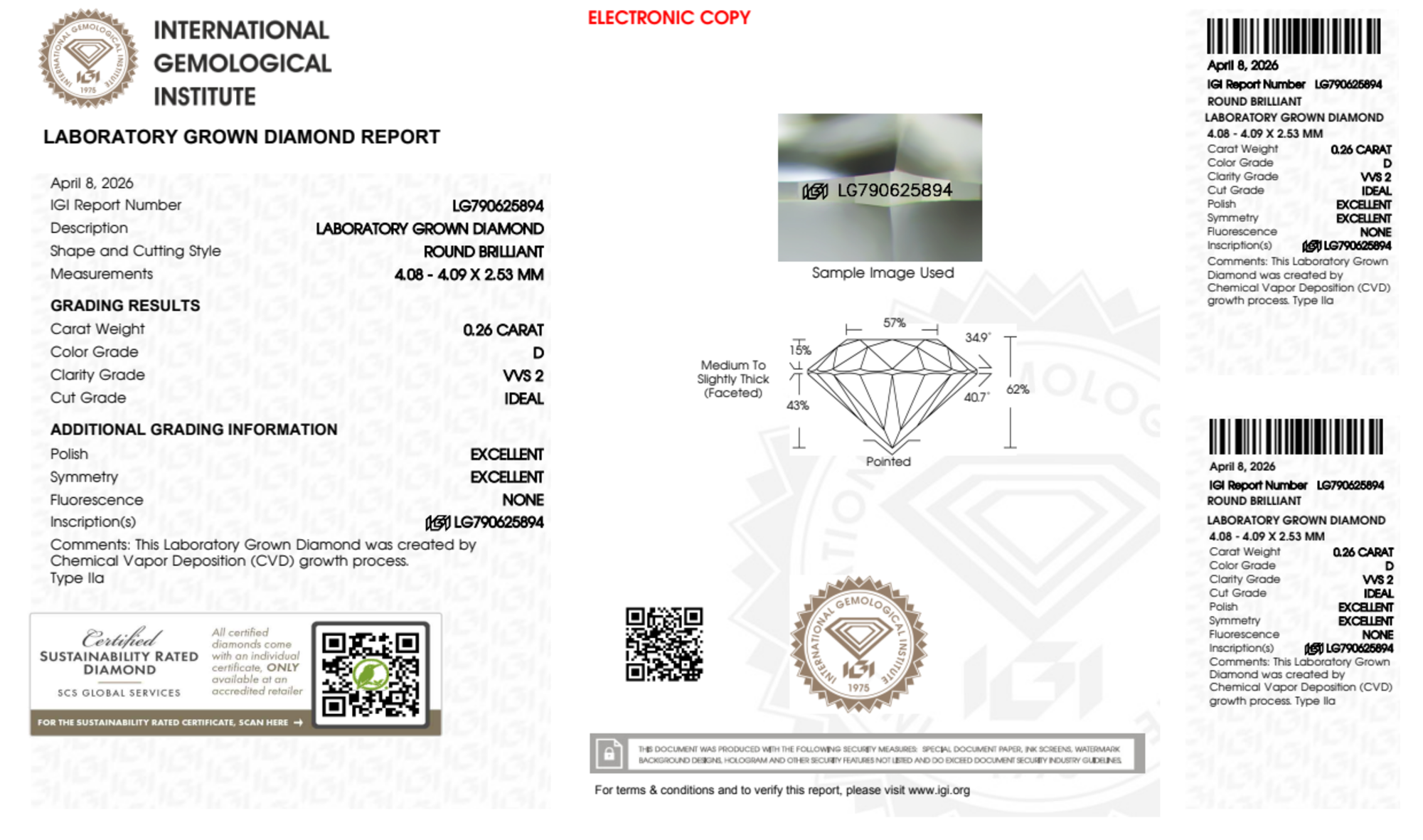 0.26 Carat round lab Diamond