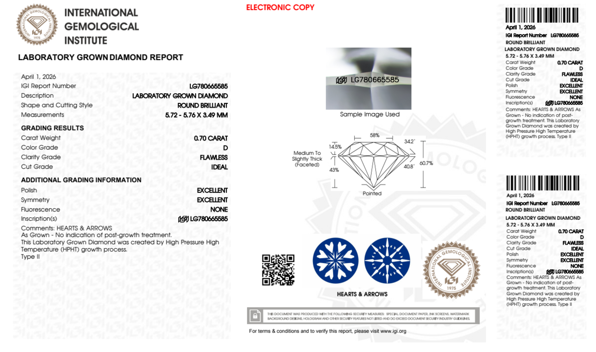 0.70 Carat round lab Diamond