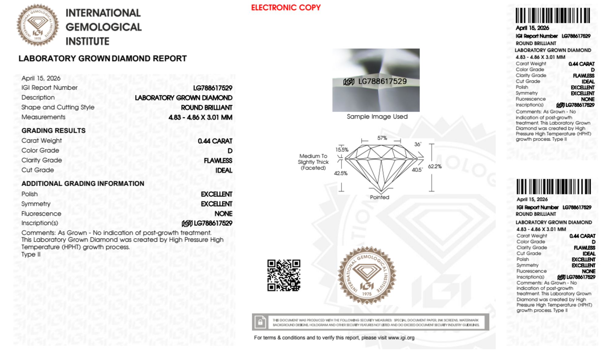 0.44 Carat round lab Diamond