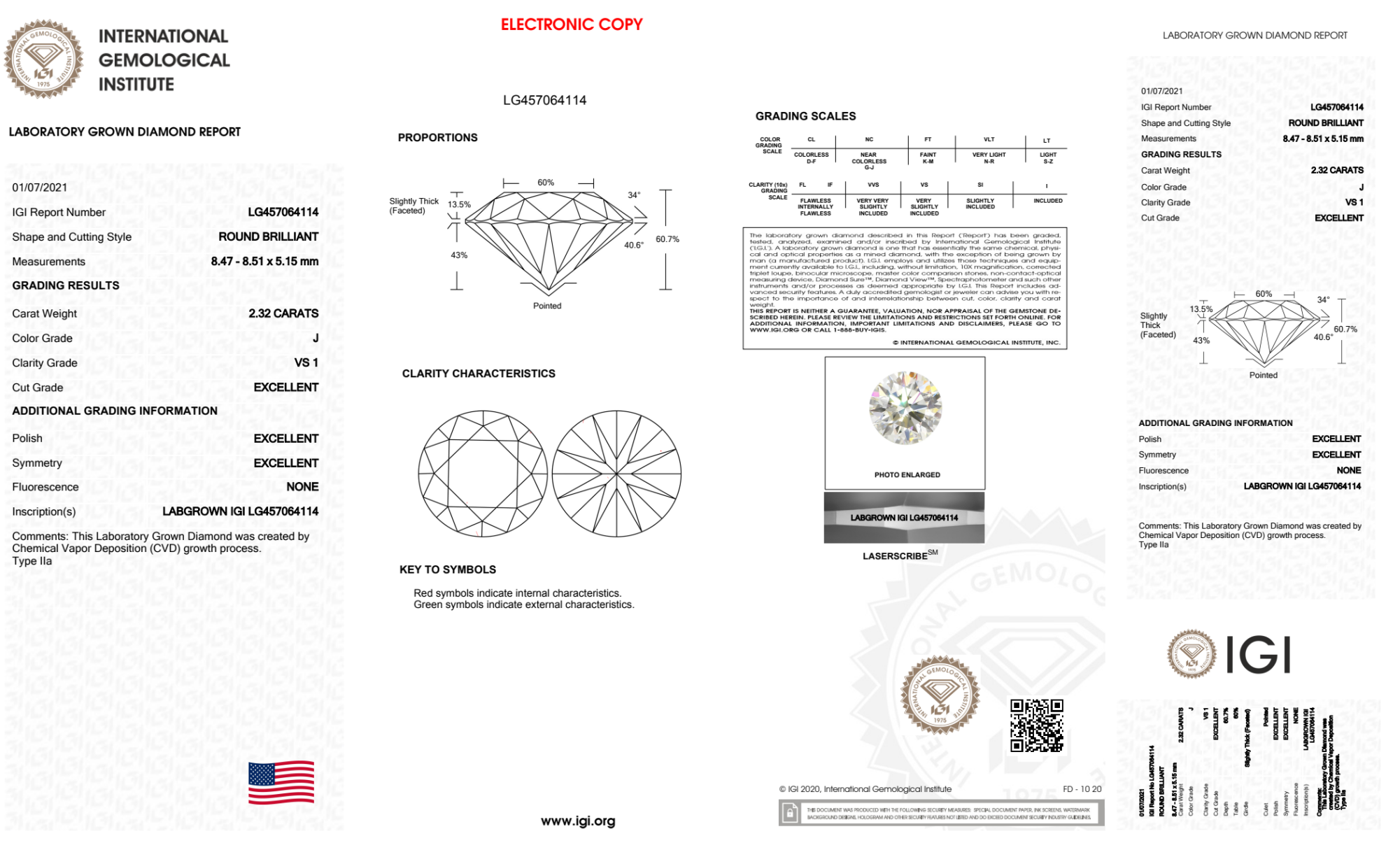 Your 2.32 carat Round lab diamond is graded J color (Near Colorless), and you can read more about J color diamonds here.