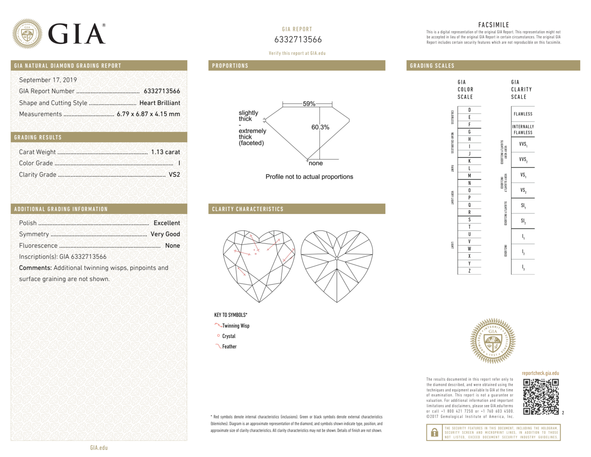 Your 1.13 carat Heart natural diamond is graded VS2 clarity, which stands for Very Slightly Included 2. Read more about VS2 clarity diamonds here, or learn more about diamond clarity in general here.