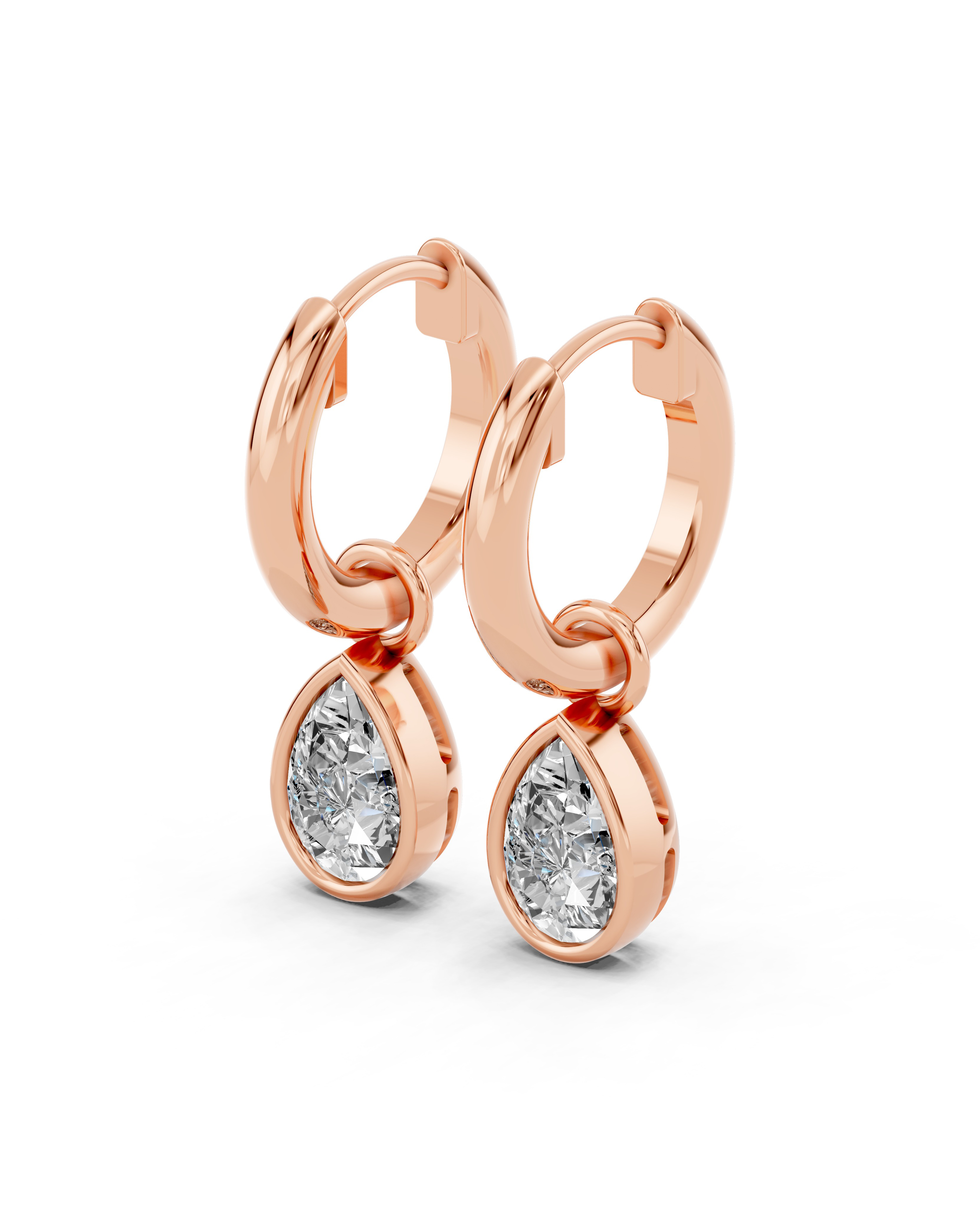 Bezel Dangle Pear Lab Diamond Huggie Earrings