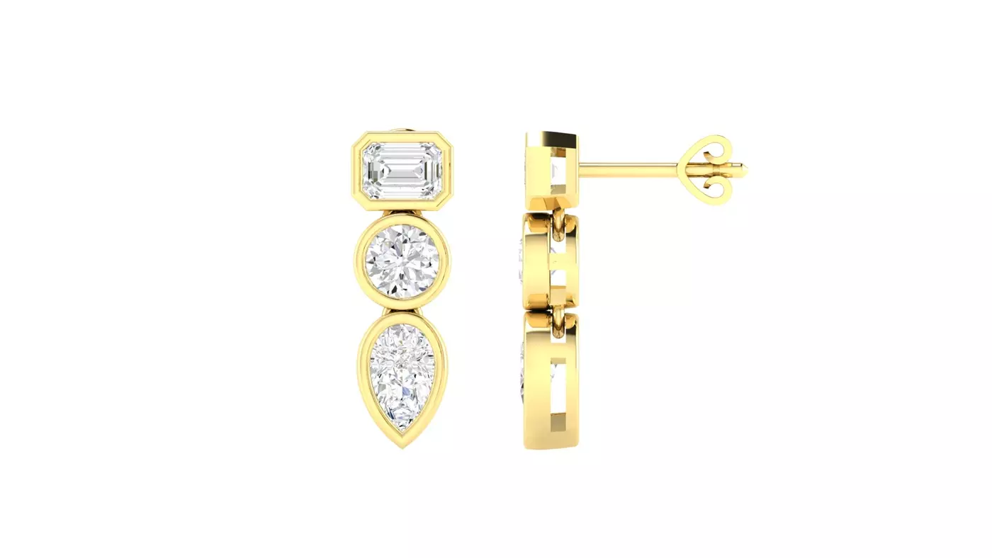 Mixed Shape Lab Diamond Drop Bezel Earrings