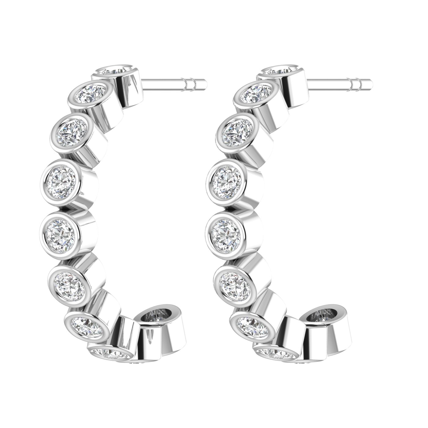 Round Bezel Lab Diamond Crescent Hoop Earrings
