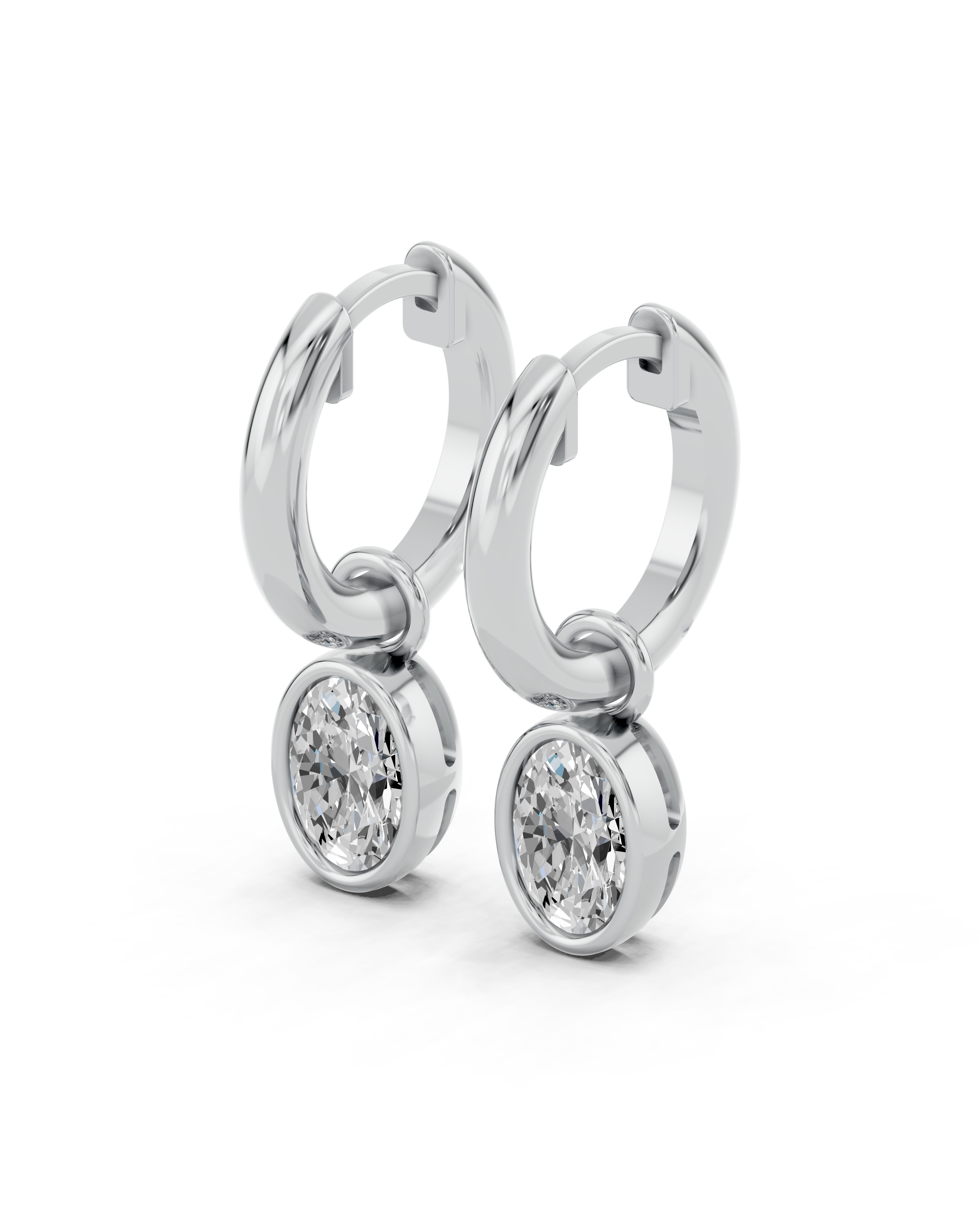Bezel Dangle Oval Lab Diamond Huggie Earrings