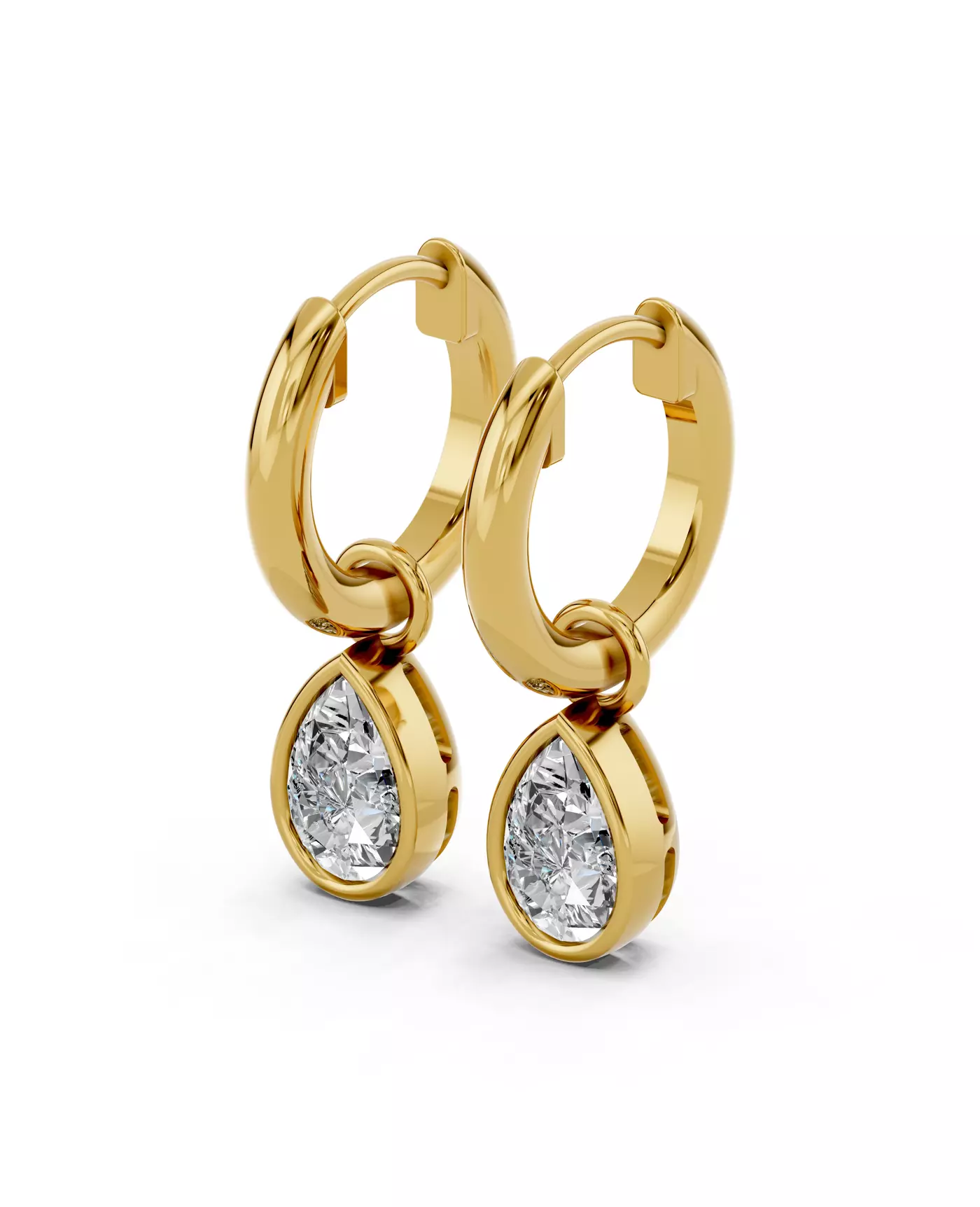 Bezel Dangle Pear Lab Diamond Huggie Earrings