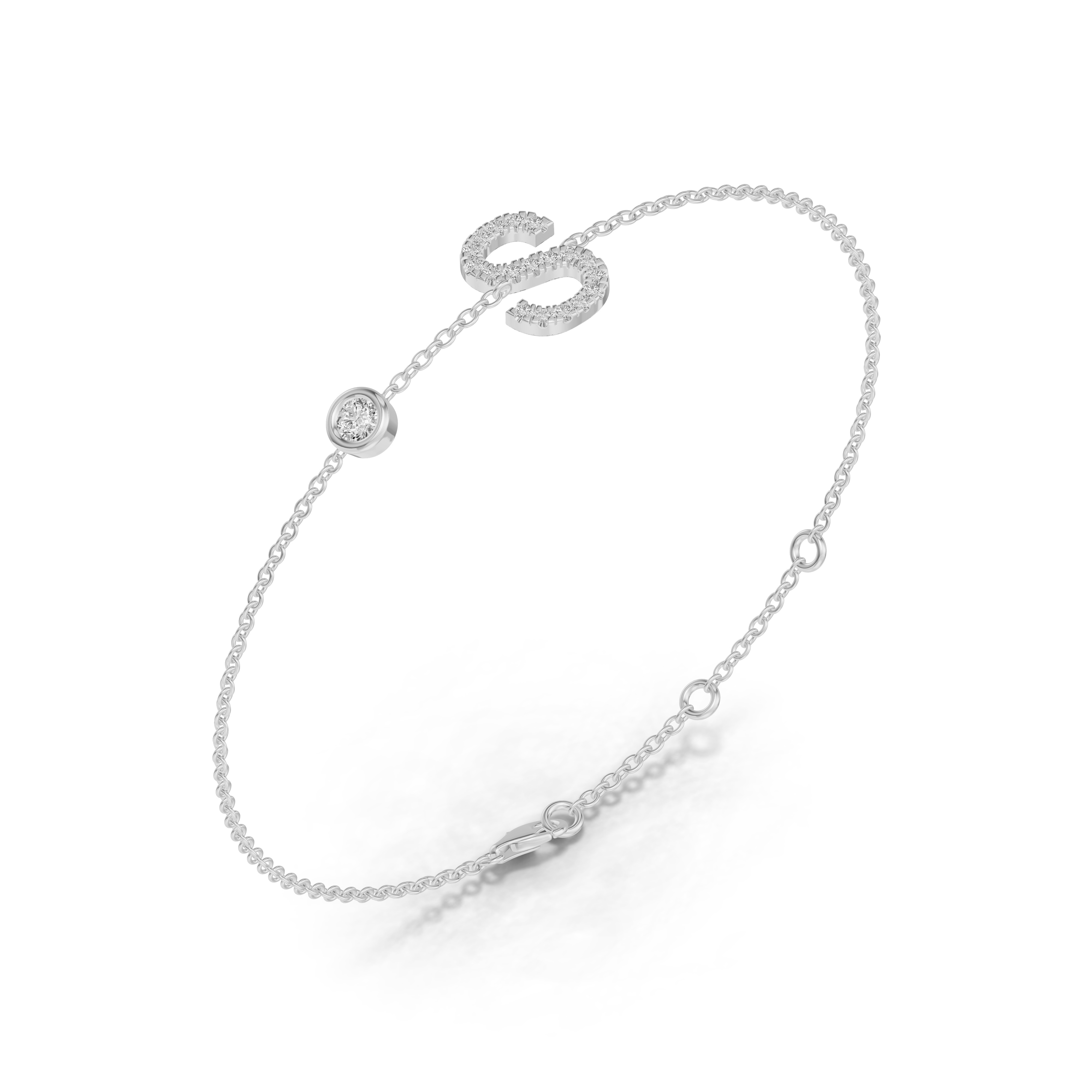 Bezel Diamond Gold Initial Bracelet - S