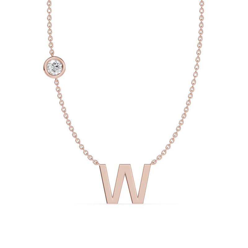 Petite Lab Diamond Initial Necklace – Y14K Rose Gold$498 $711