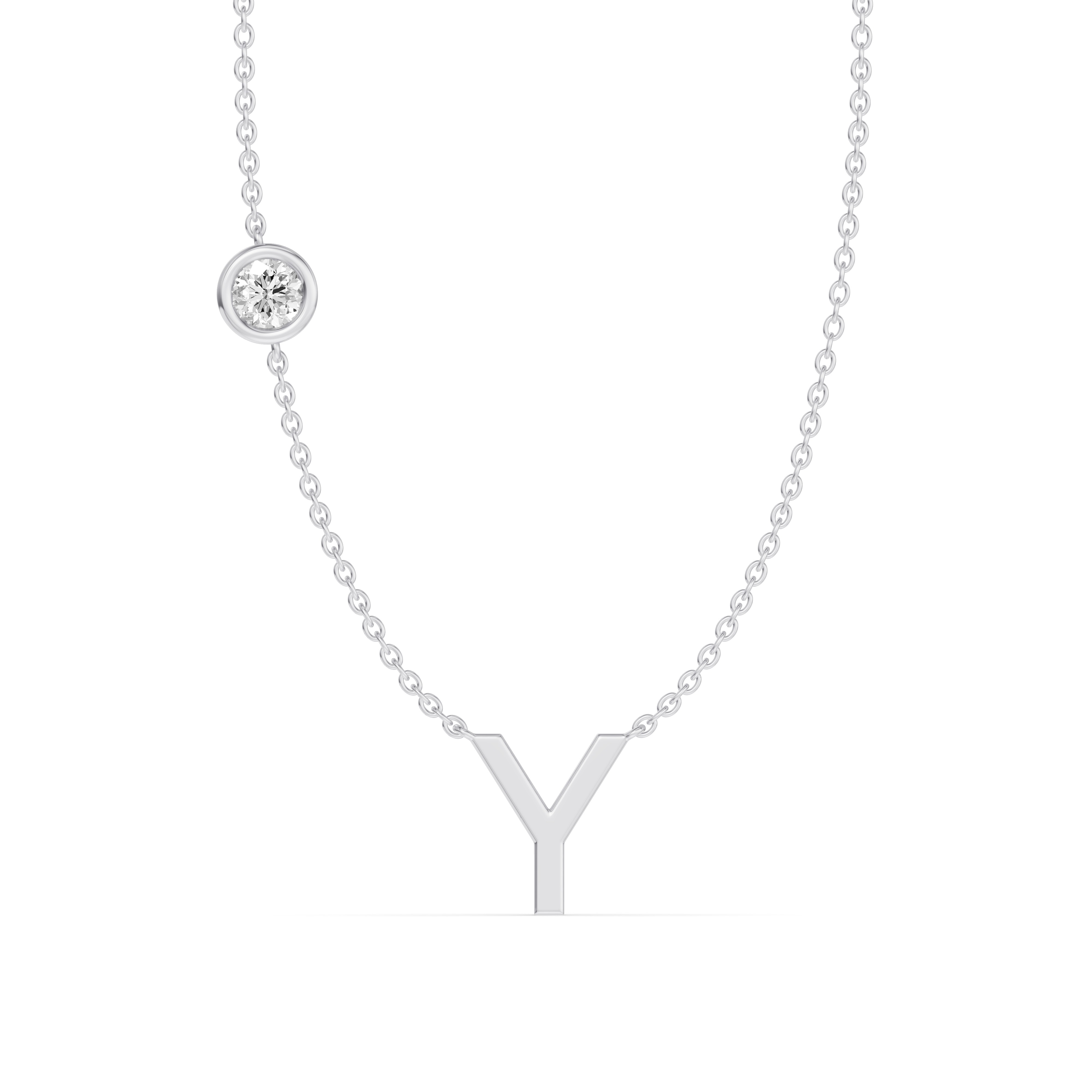 Bezel Lab Diamond Gold Initial Necklace - H14K White Gold$795 $1,136