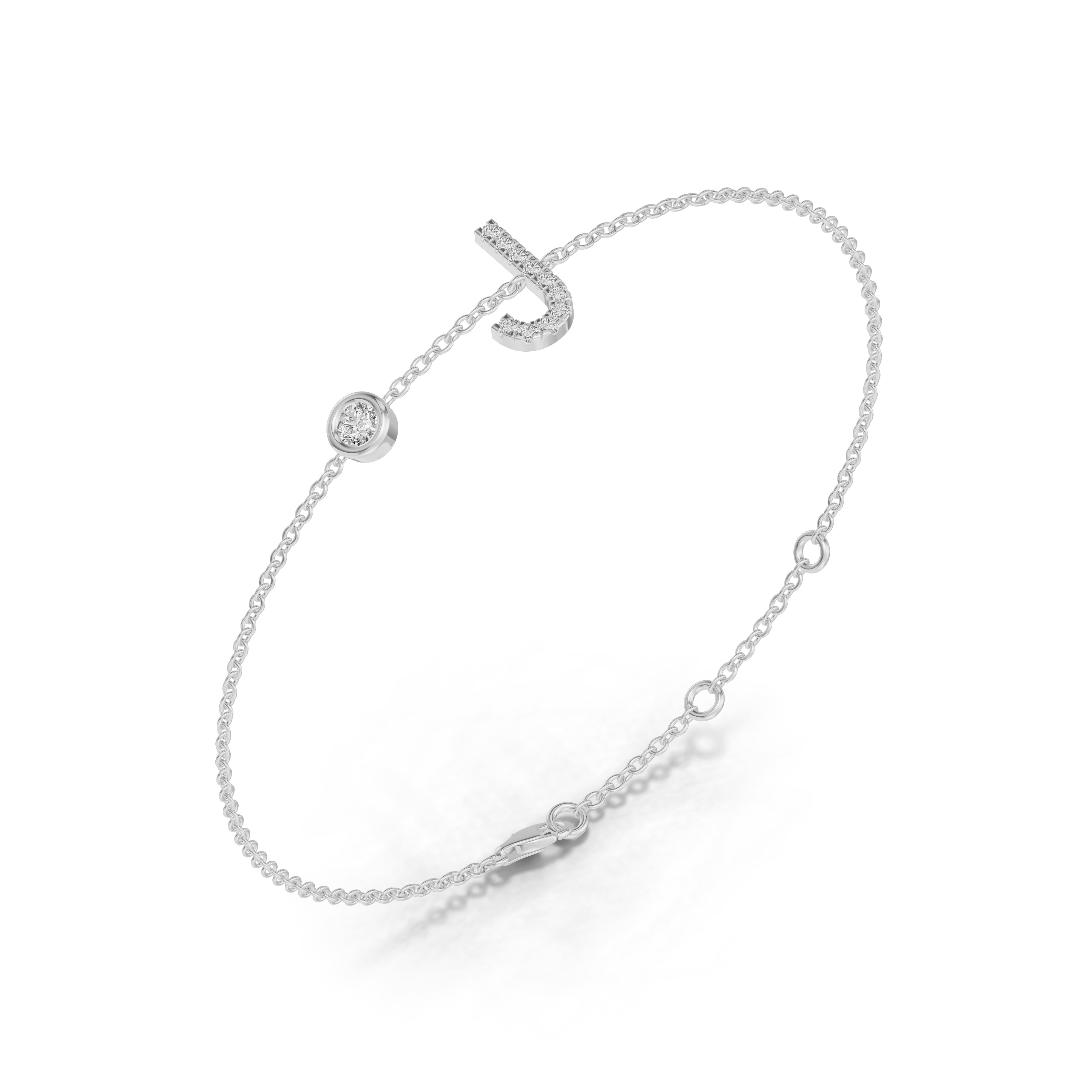 Bezel Lab Diamond Gold Initial Bracelet - J