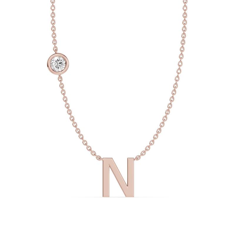 Bezel Lab Diamond Gold Initial Necklace - T14K Rose Gold$779 $1,299