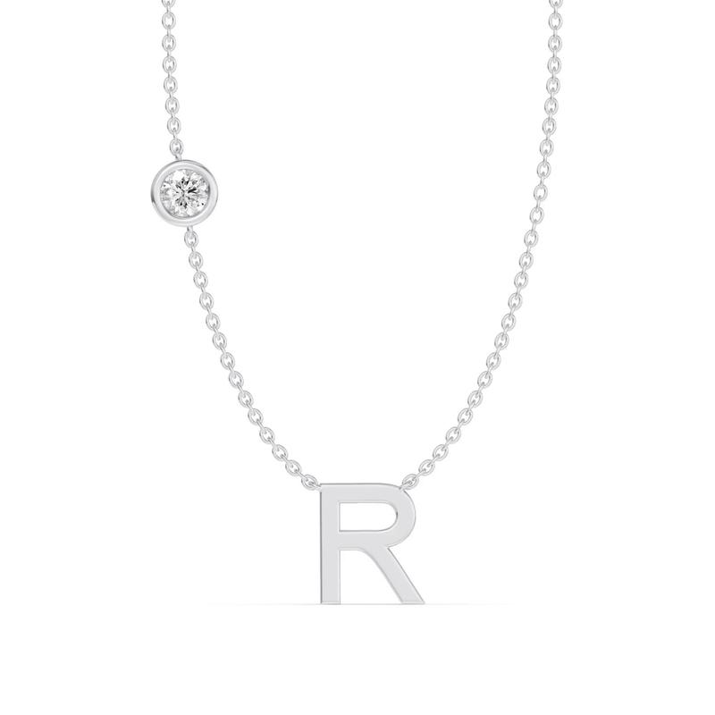Bezel Lab Diamond Gold Initial Necklace - R