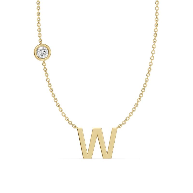 Bezel Lab Diamond Gold Initial Necklace - W