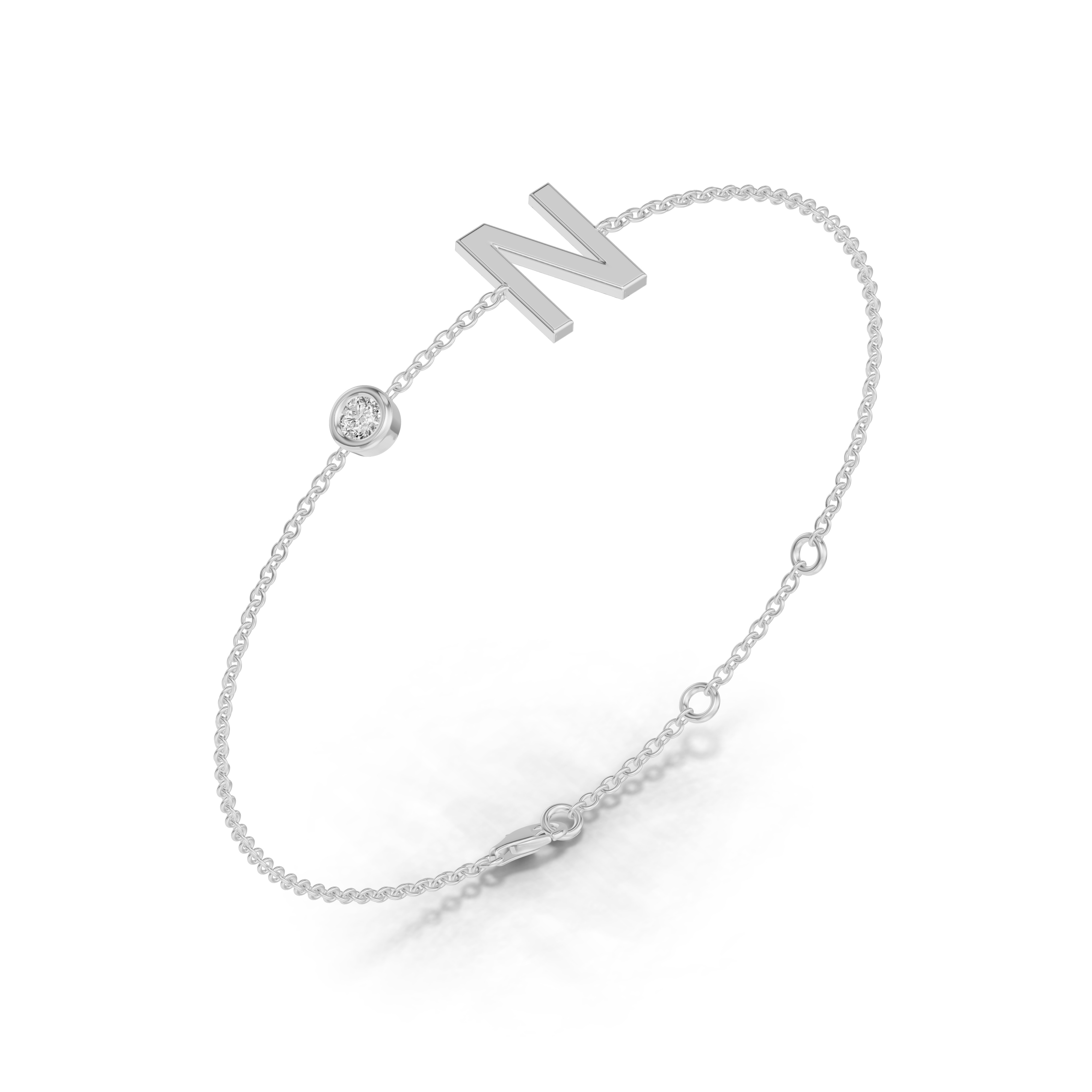 Bezel Lab Diamond Pavé Initial Bracelet - N