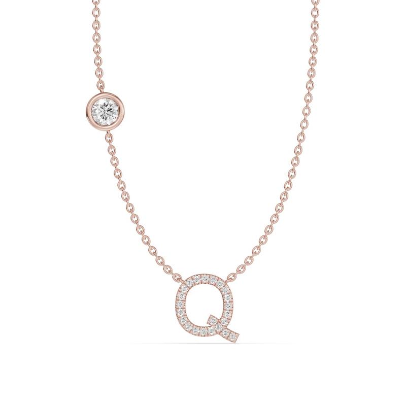 Bezel Lab Diamond Pavé Initial Necklace - Q