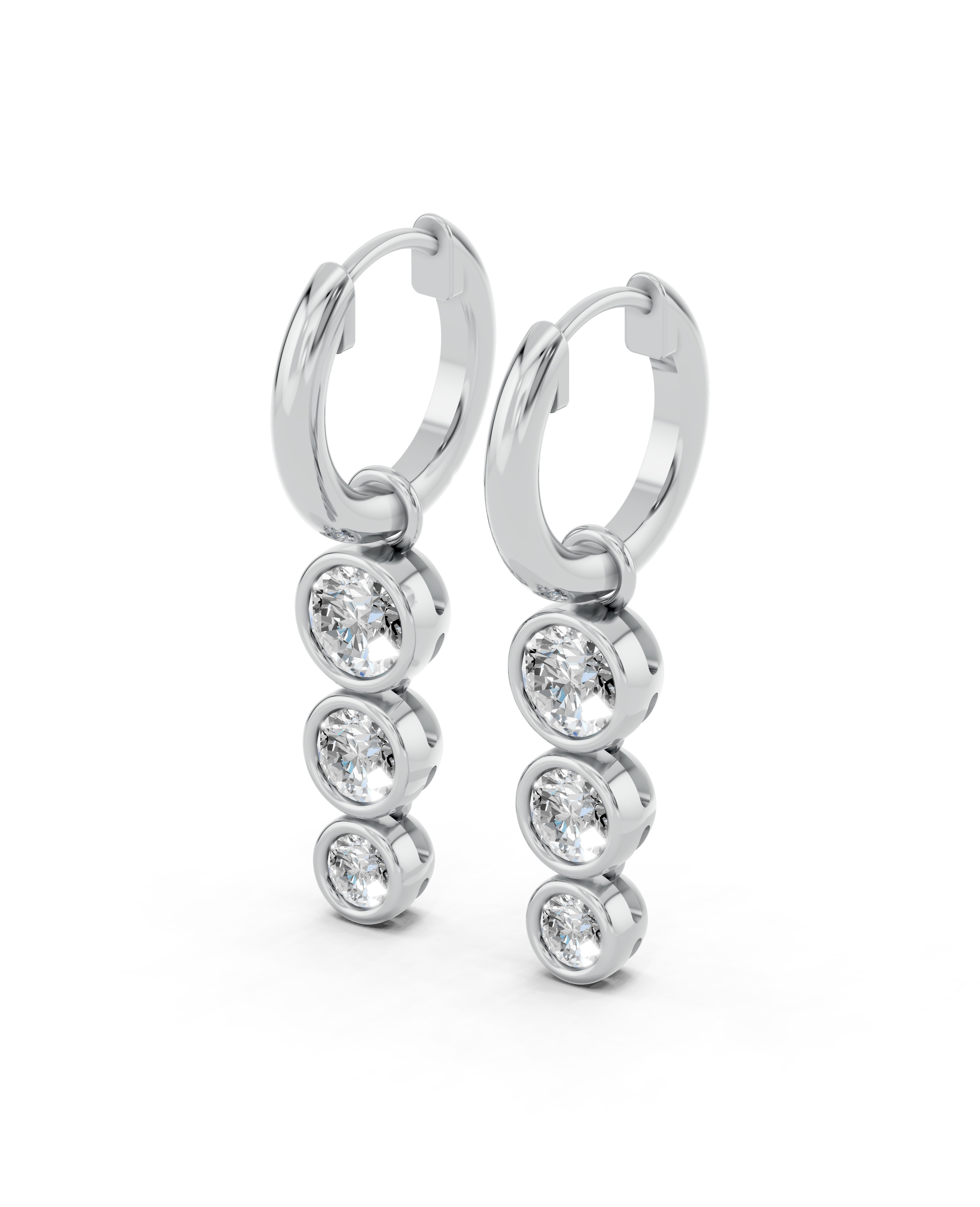 Bezel Triple Dangle Lab Diamond Huggie Earrings