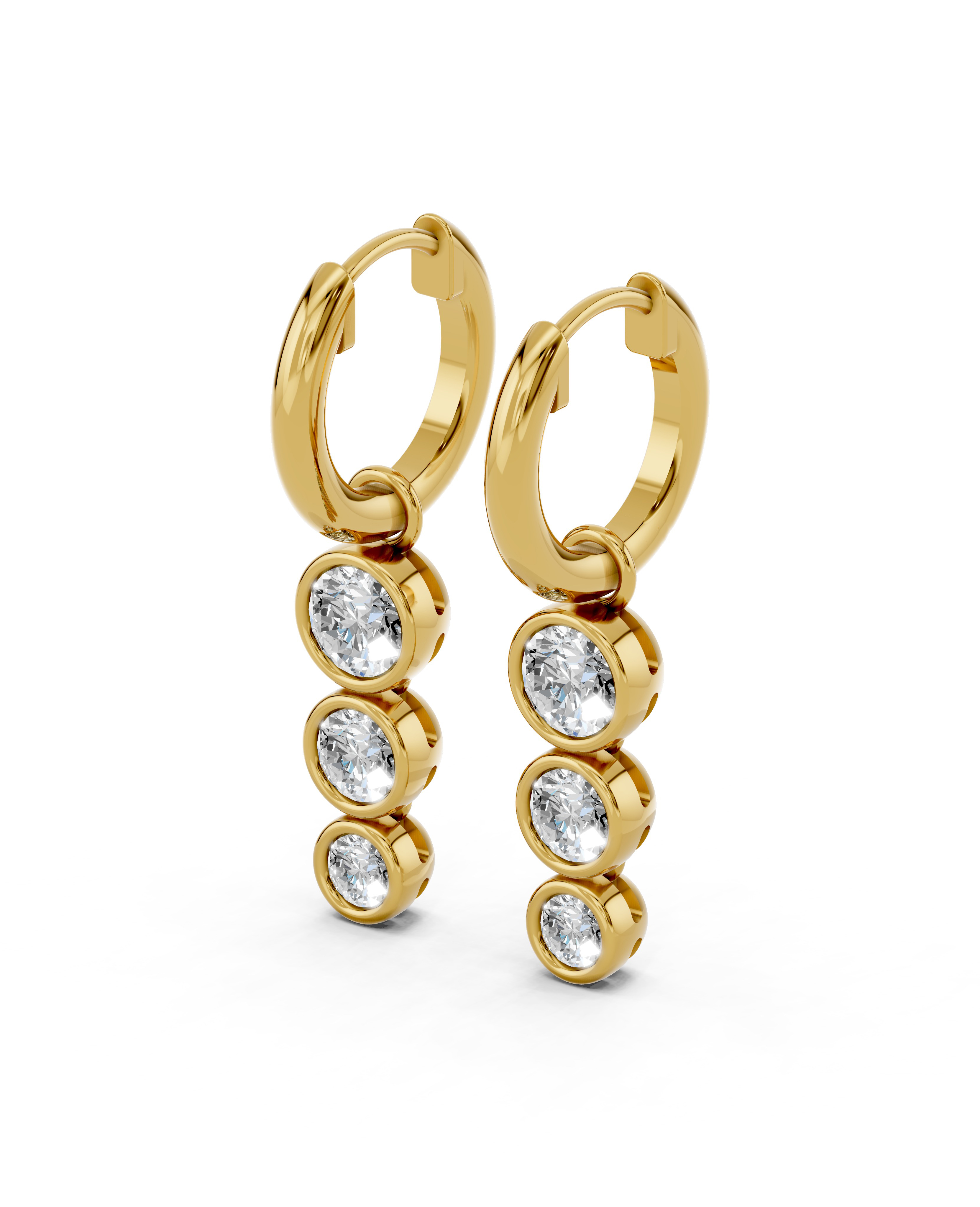 Bezel Triple Dangle Lab Diamond Huggie Earrings