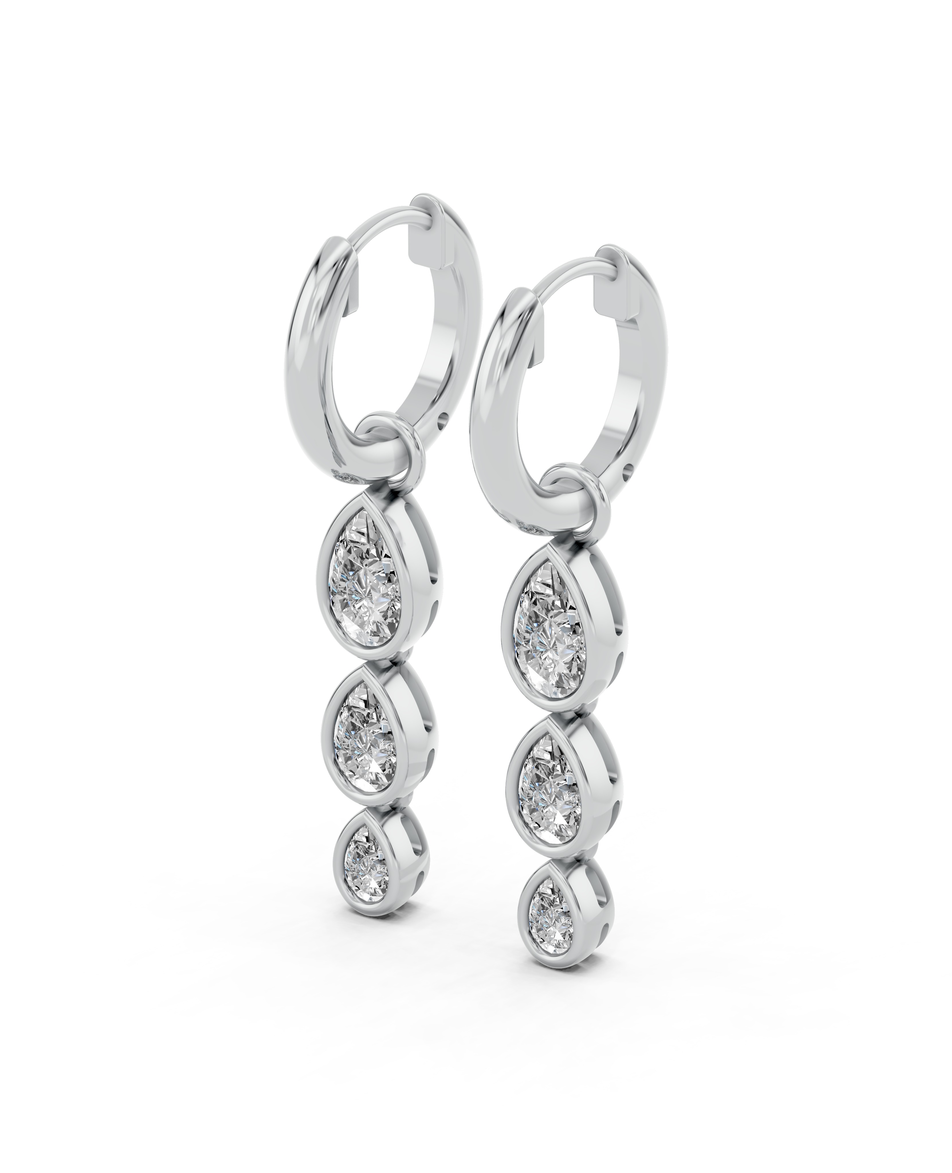 Bezel Triple Dangle Pear Lab Diamond Huggie Earrings