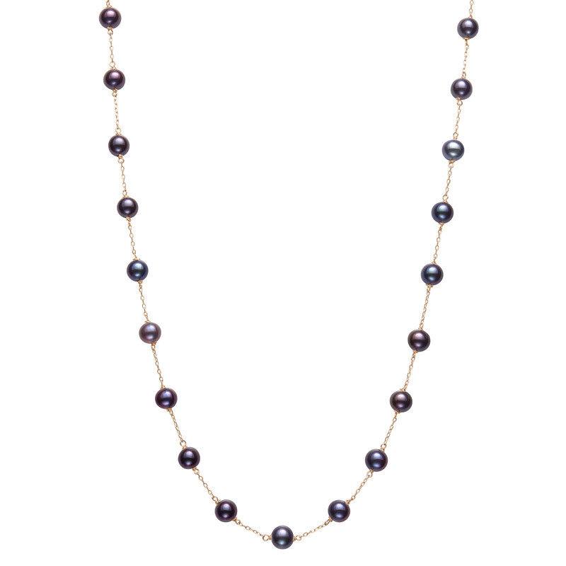 Black Freshwater Pearl Station Necklace (6–7mm)