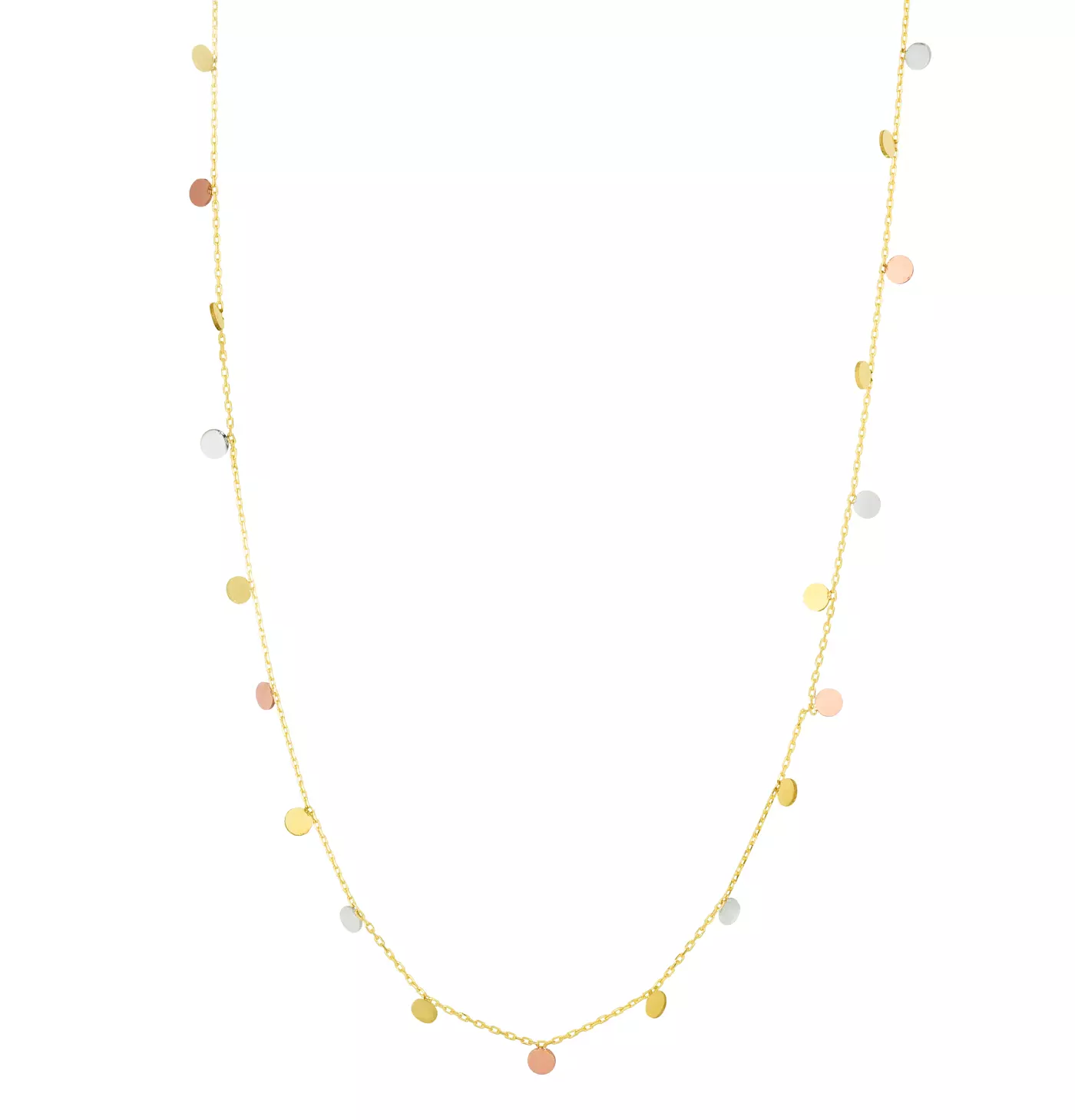 Dangling Tri-Color Disc Station Gold Necklace