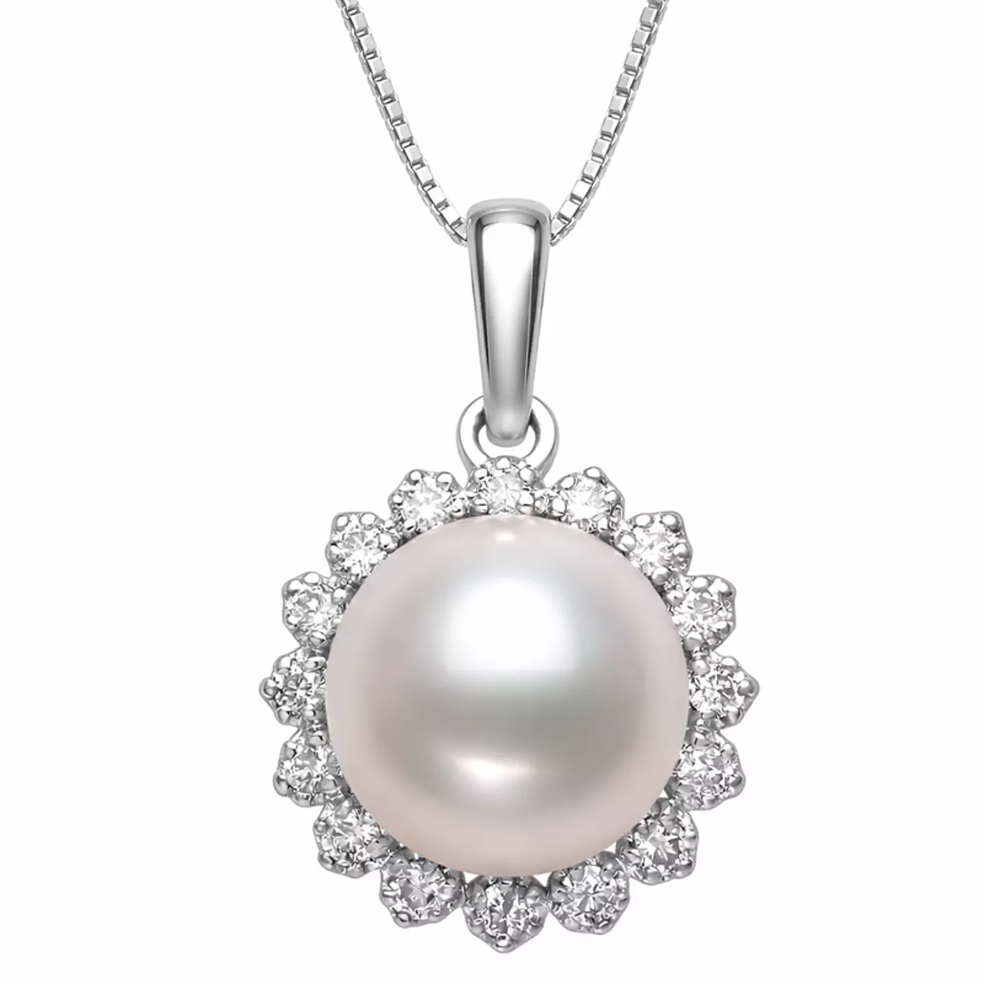 Freshwater Pearl Diamond Halo Necklace (7-8mm)