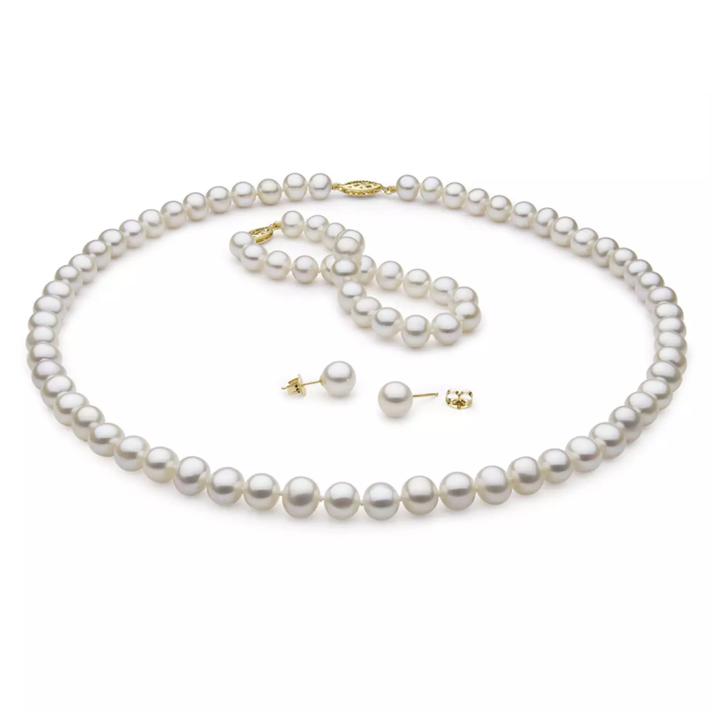 Freshwater Pearl Necklace, Bracelet & Earrings Set (6–7mm)