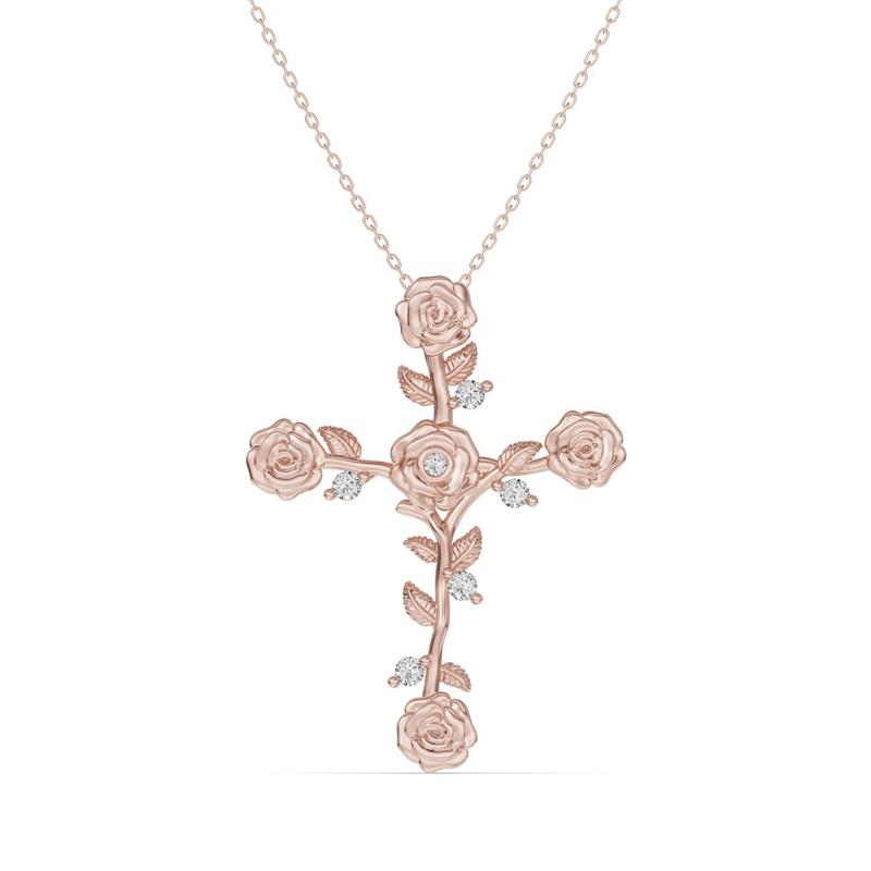 Garden Rose Cross Lab Diamond Pendant