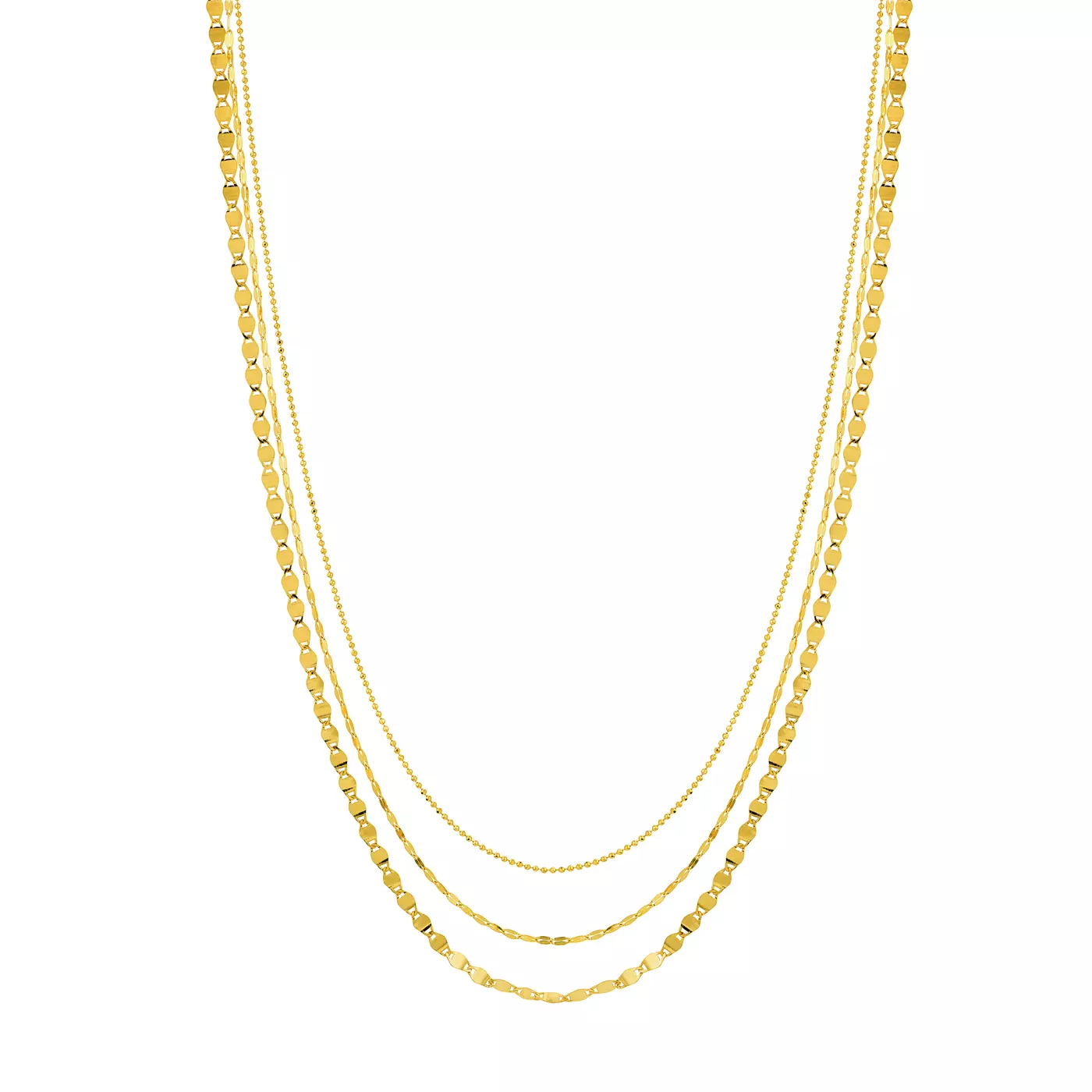 Mixed Chain Style Triple Strand Gold Necklace