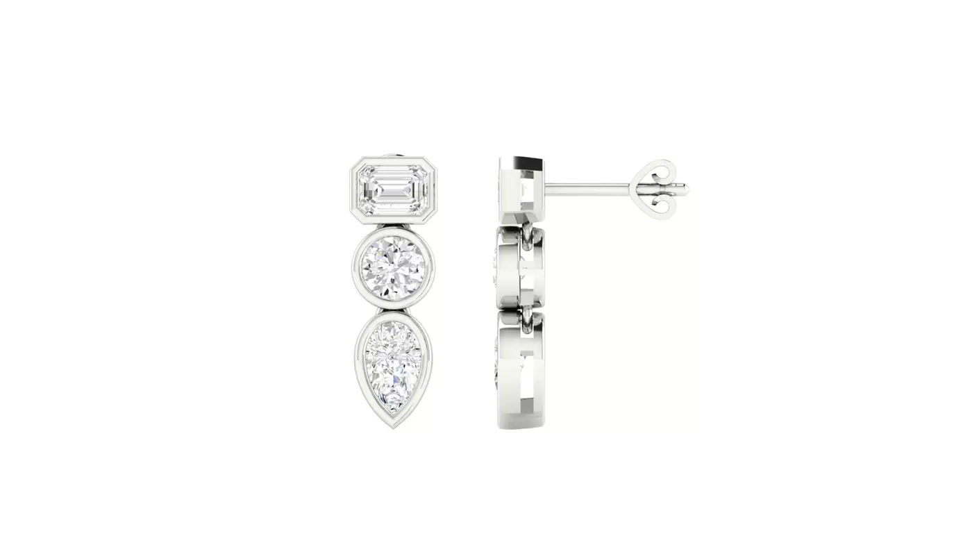 Mixed Shape Lab Diamond Drop Bezel Earrings