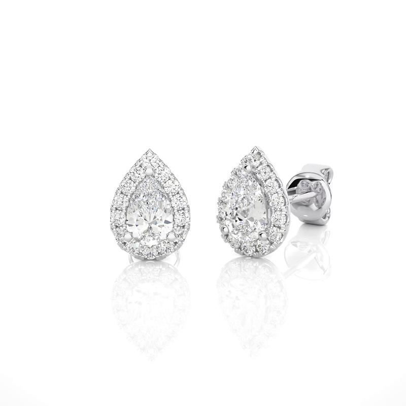 Pear Shaped Lab Diamond Halo Studs (1 1/3 ct. tw.)