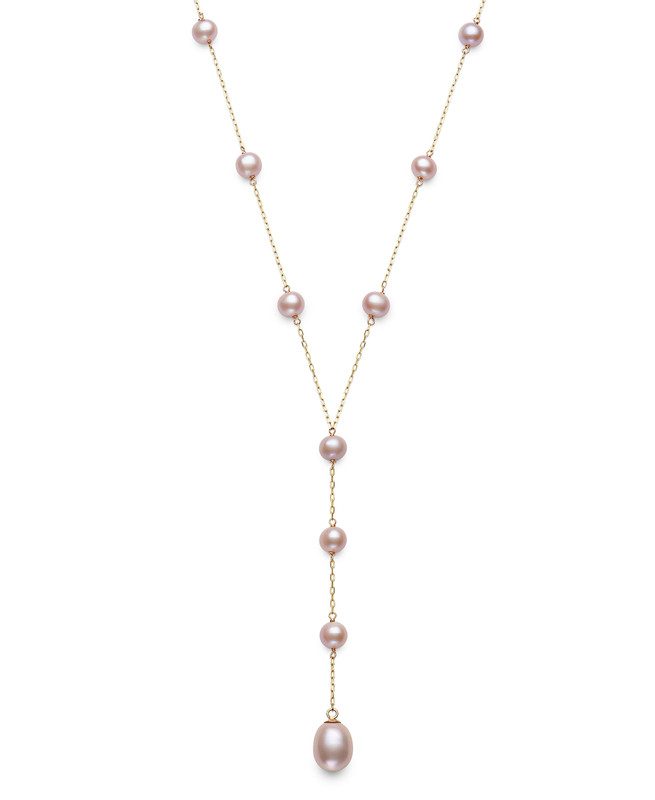 Pink Freshwater Pearl Station Y-Drop Necklace (6–9mm)