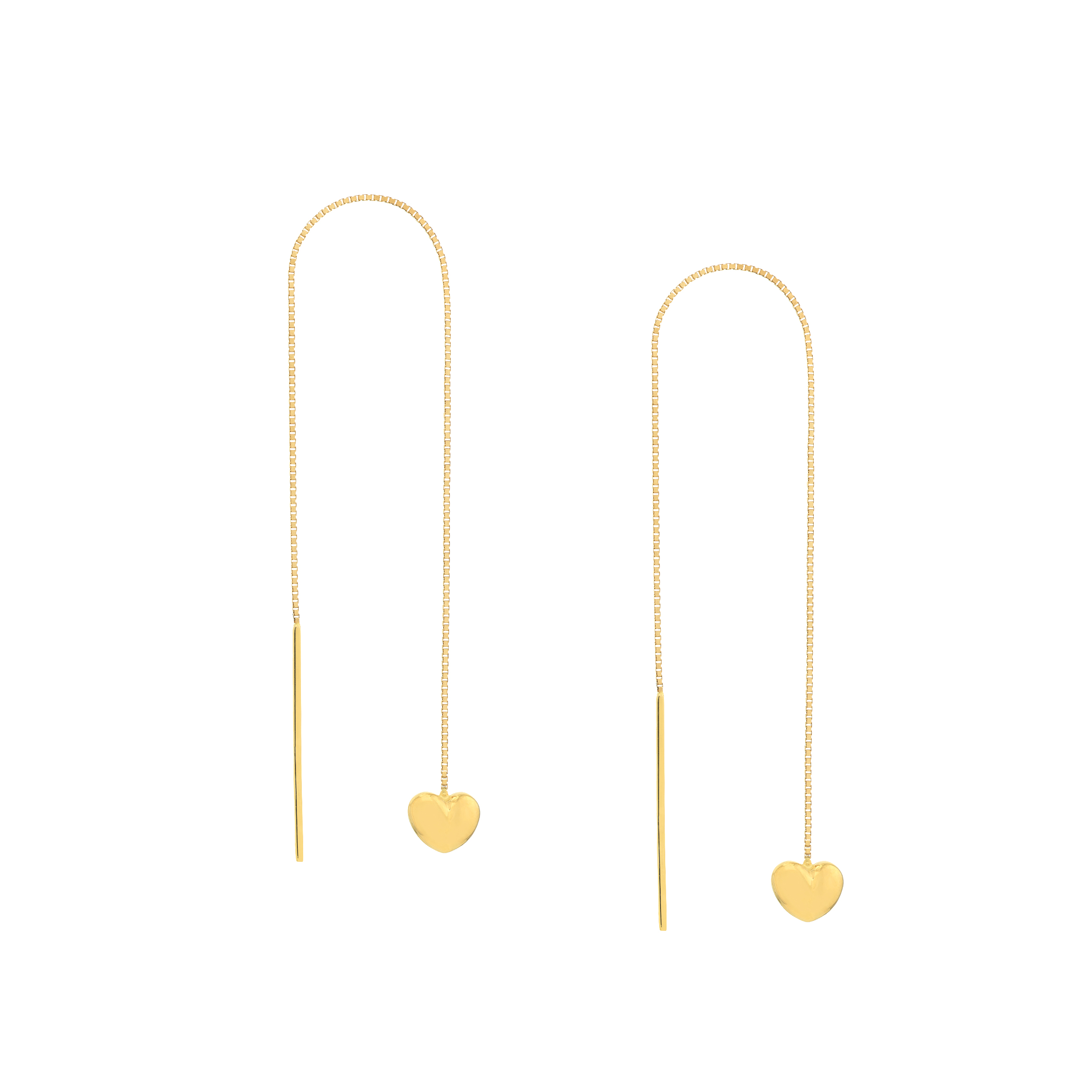 Puffed Heart Threader Gold Earrings