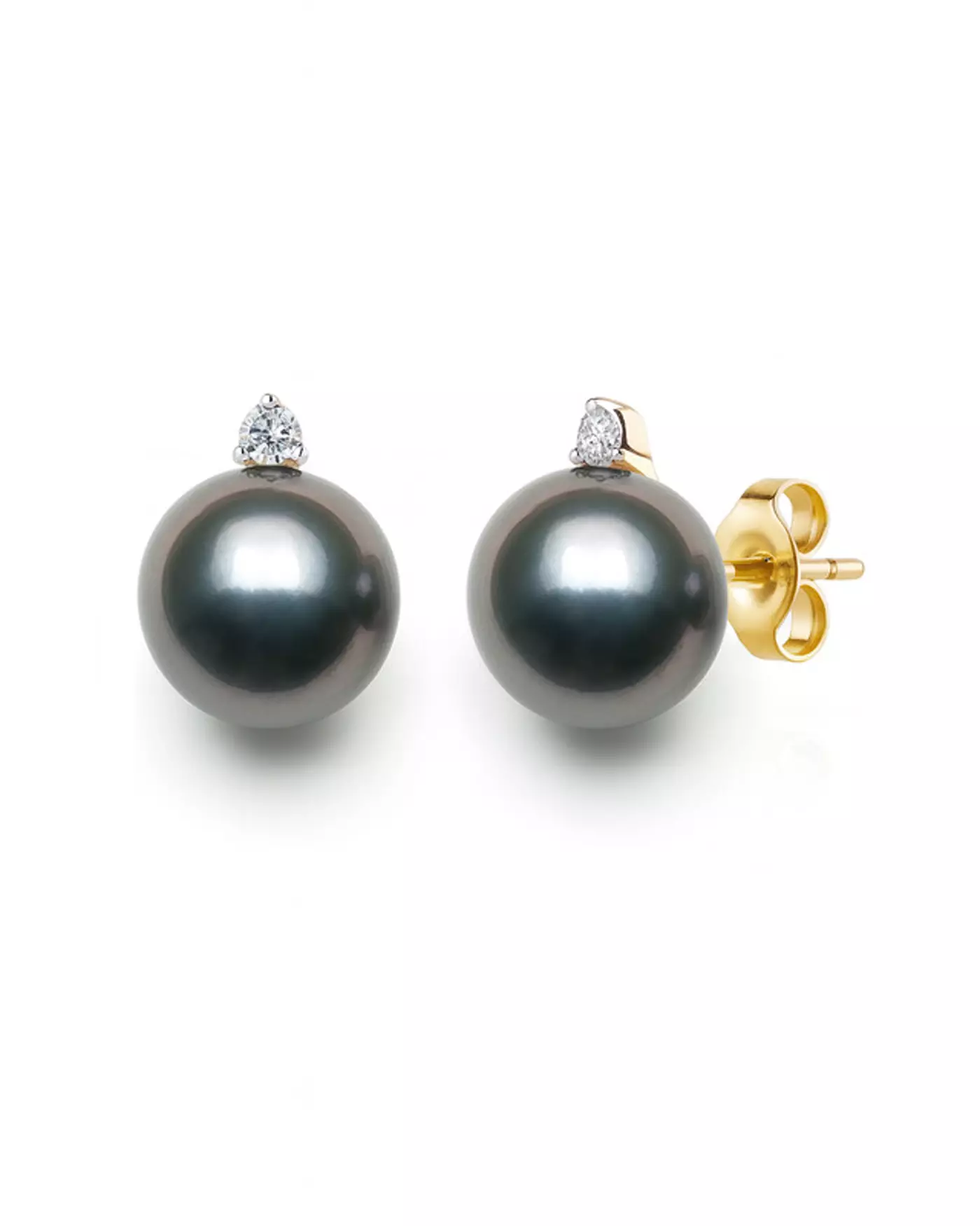 Tahitian Black Pearl & Lab Diamond Stud Earrings (8-9mm)