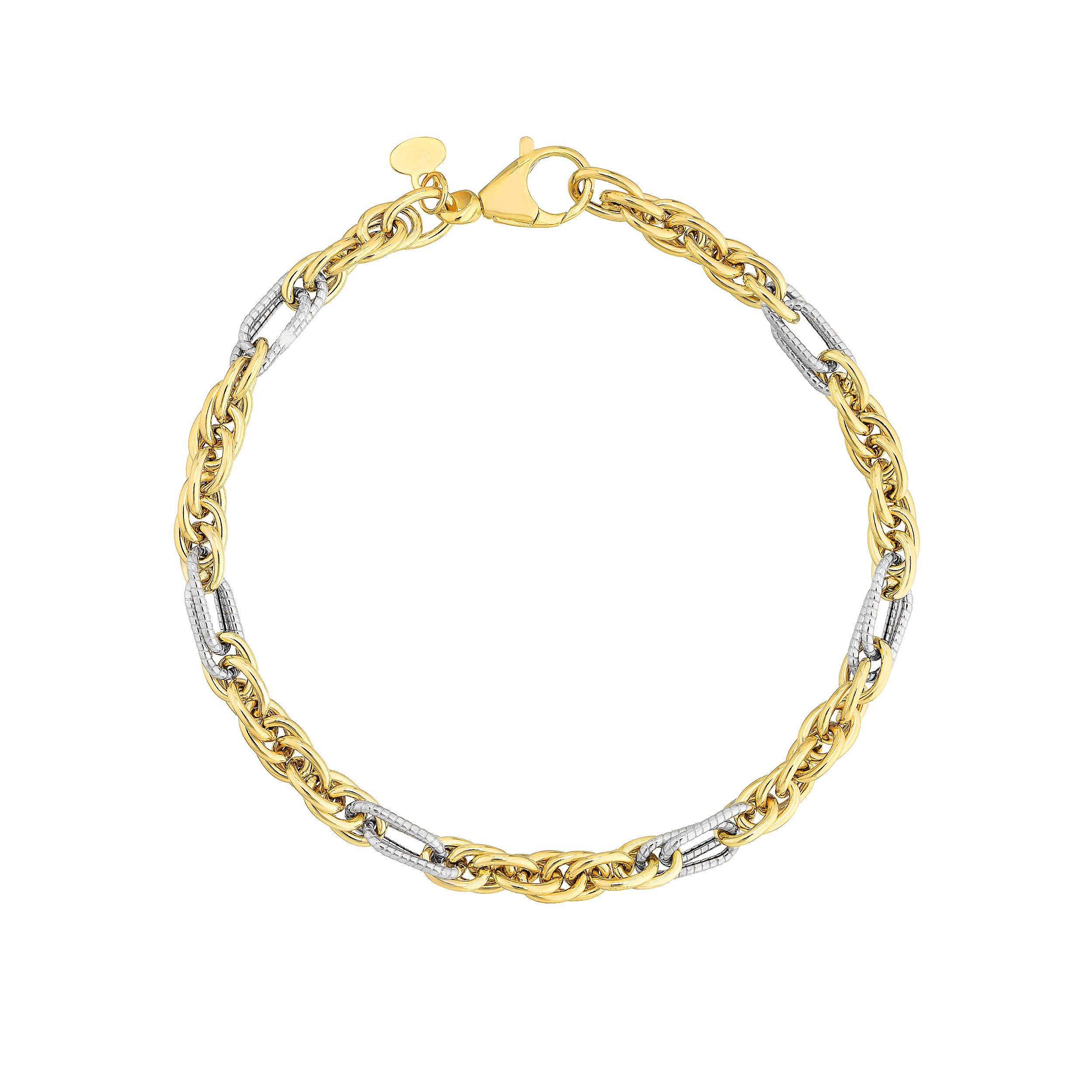 Two-Tone Rope Link Gold Bracelet