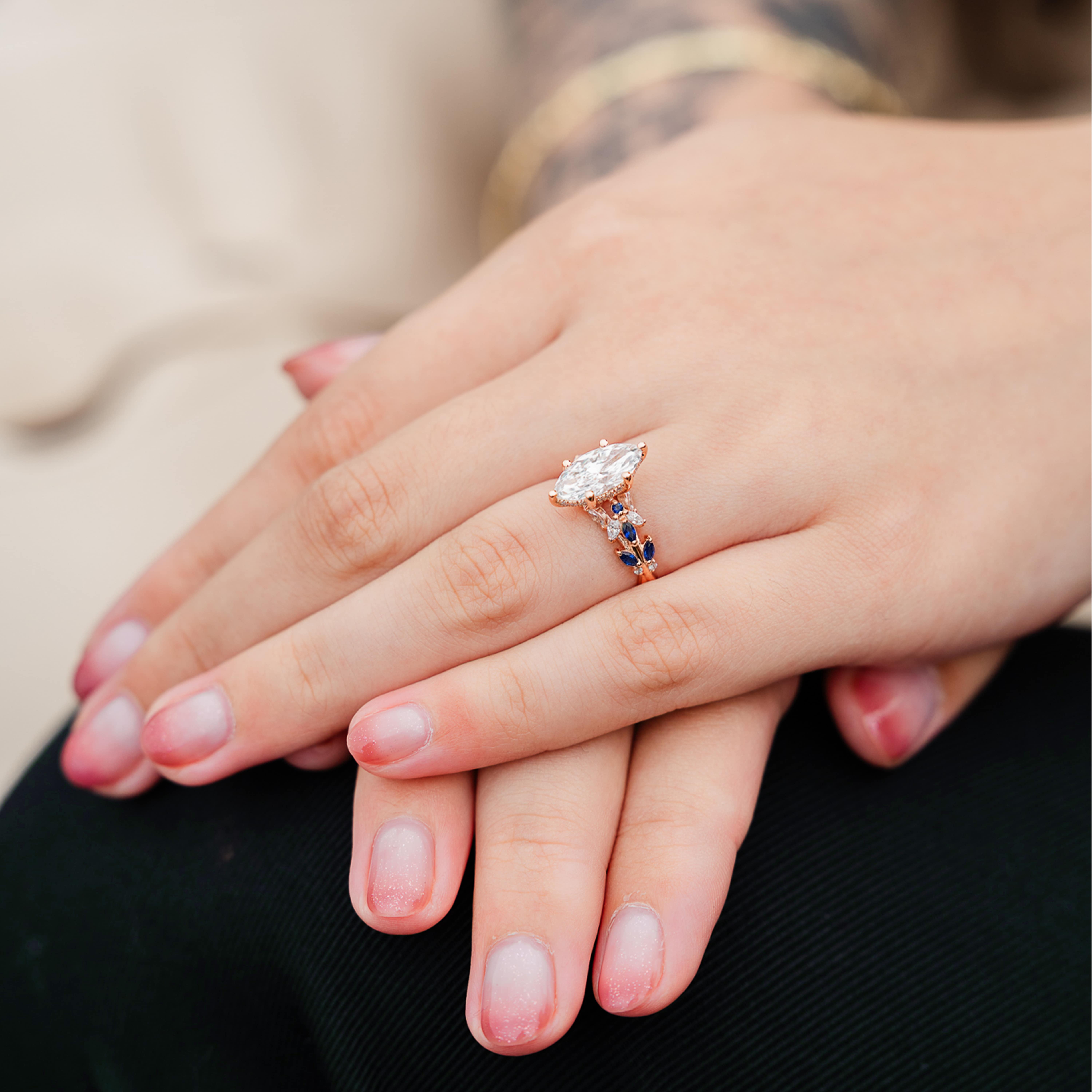 Butterfly And Bee Vine Twist Lab Sapphire Engagement Ring
