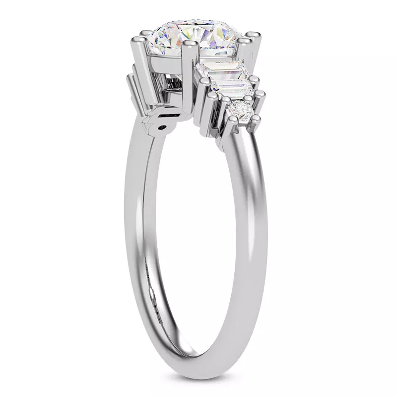 Tia Graduated Baguette And Round Diamond Engagement Ring