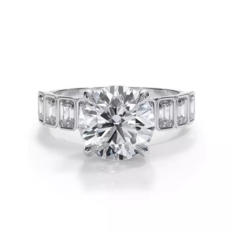 Bellora Lab Emerald-Cut Bezel Hidden Halo Engagement Ring
