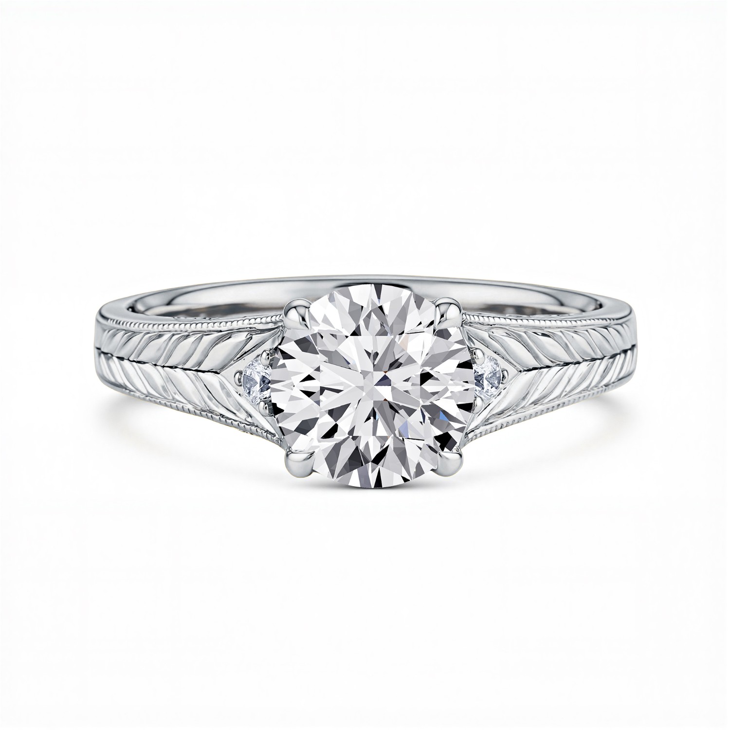 Annette Vintage Engraved Lab Diamond Accent Engagement Ring